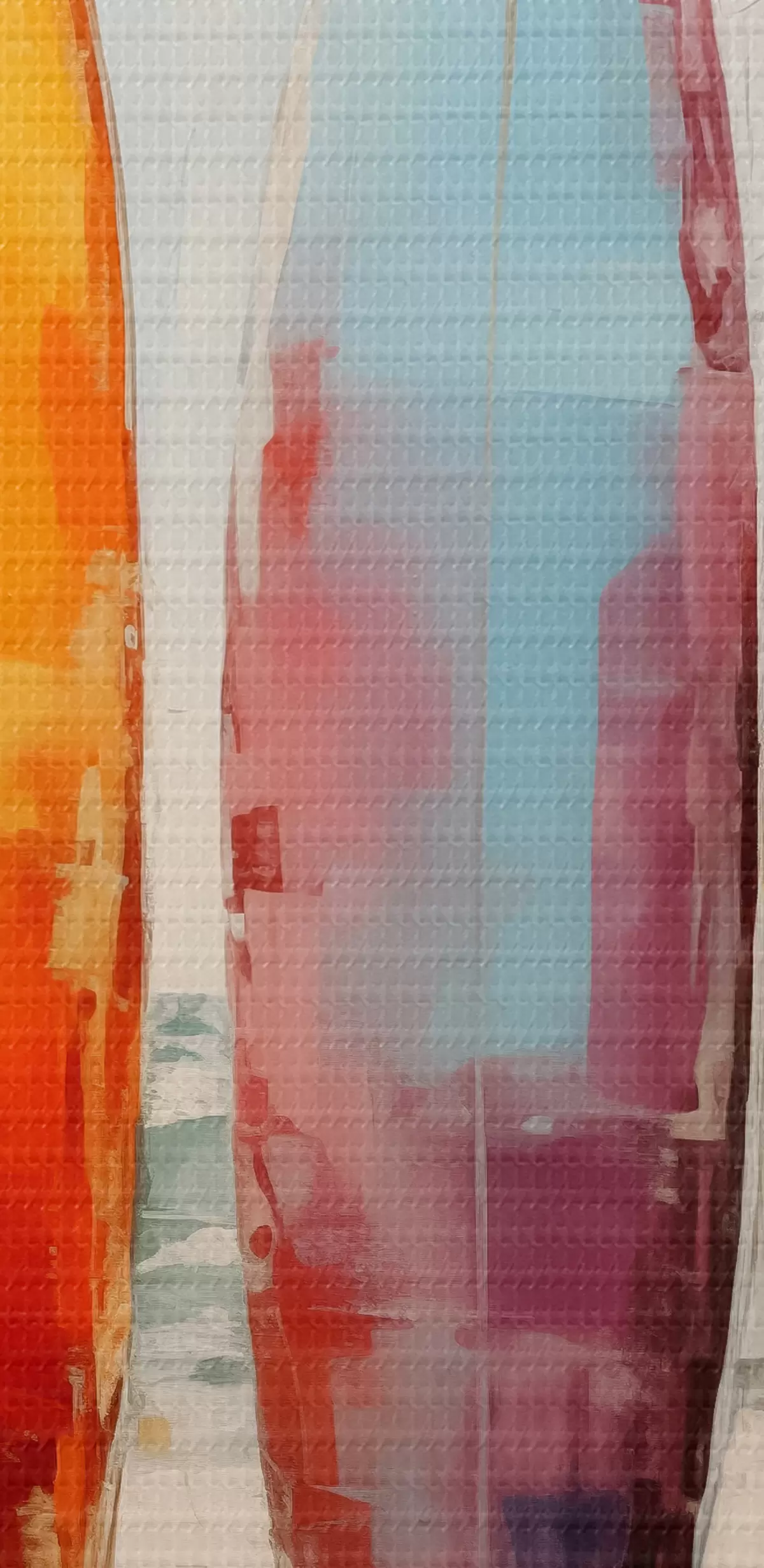 Het schilderij kan direct na ontvangst worden opgehangen. Het schilderij wordt opgespannen op een 2 cm breed houten spieraam.