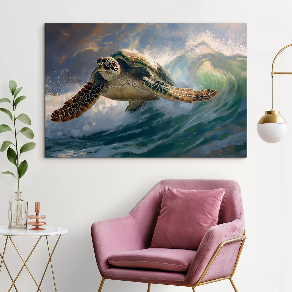 Schilderij Schildpad, water, groen, blauw Art. s40001