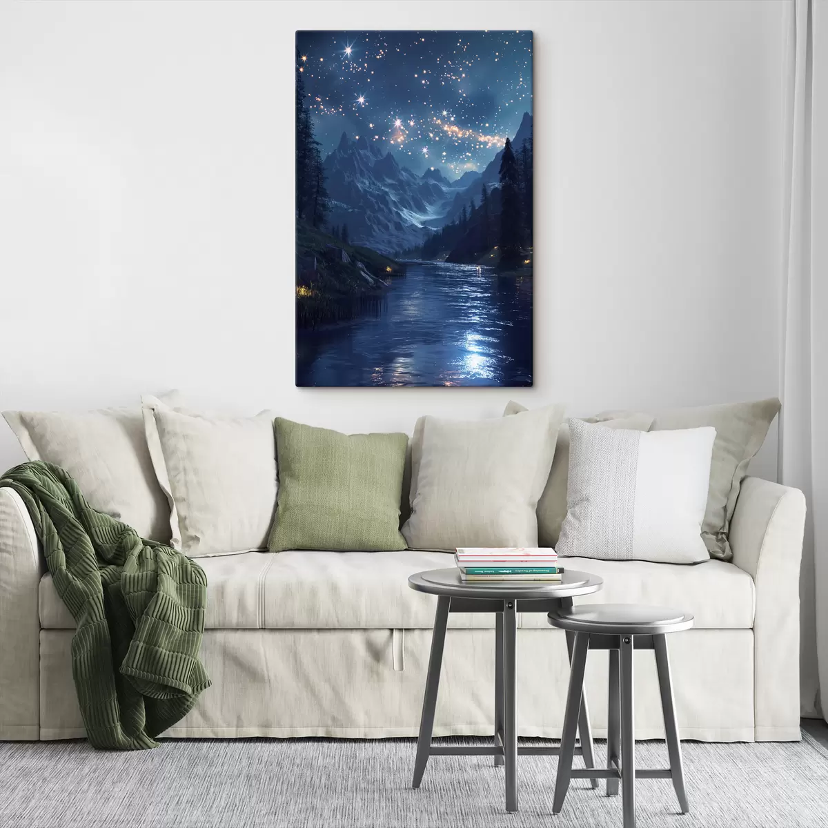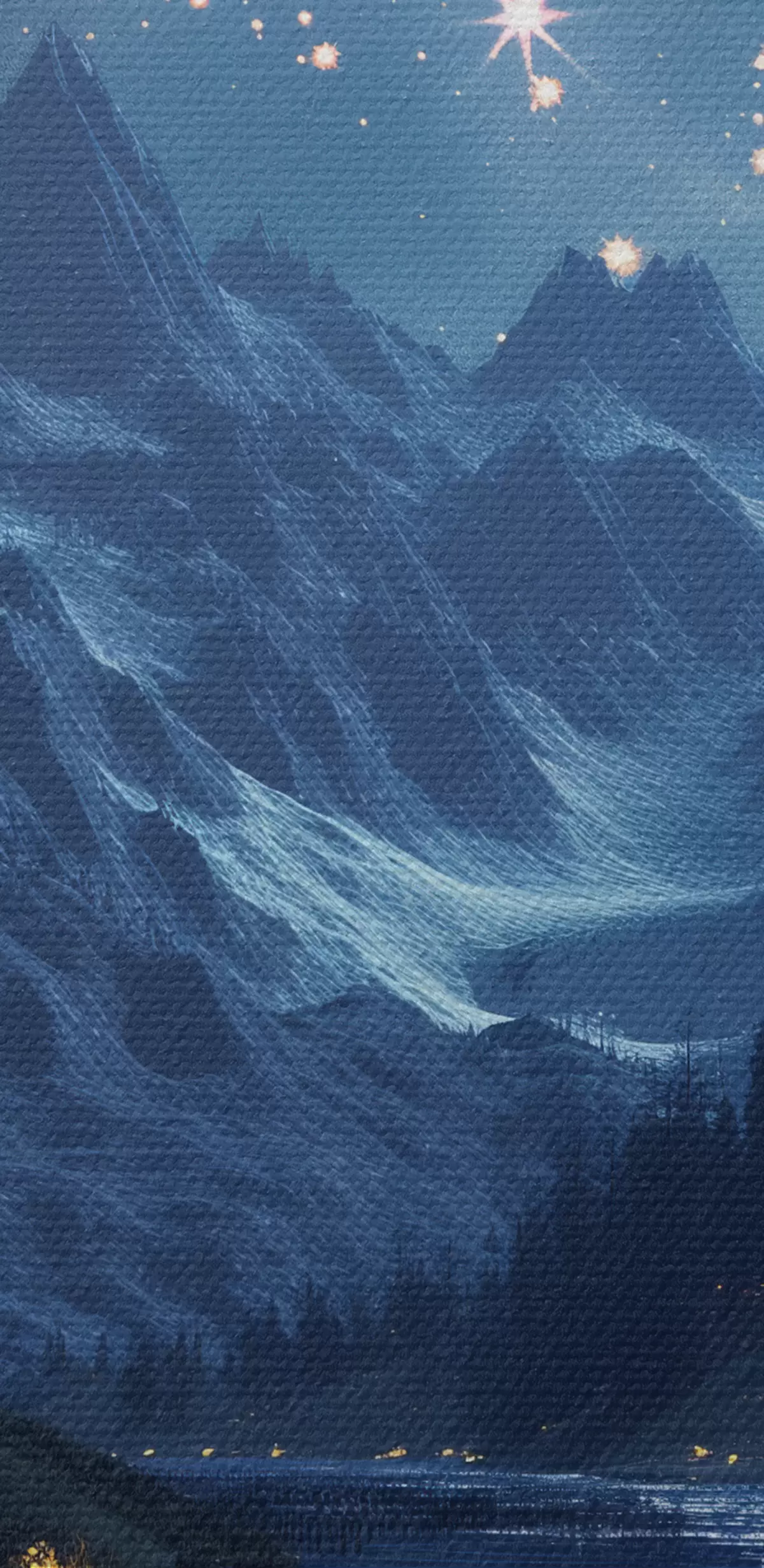 Je kunt het schilderij ophangen aan schroeven. Hiervoor leveren we bevestigingen bij onze foto's, zodat je de foto gemakkelijk kunt ophangen.