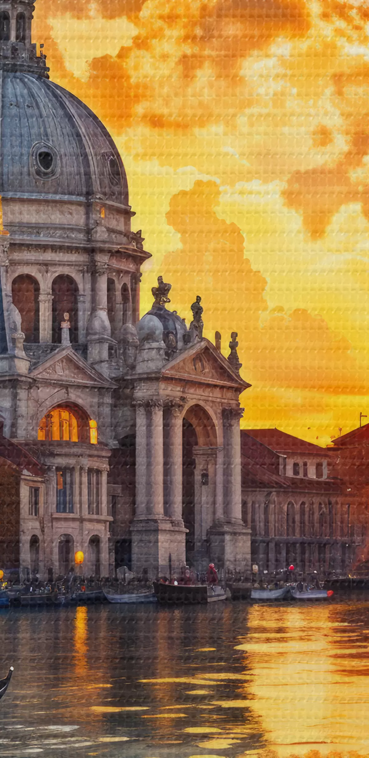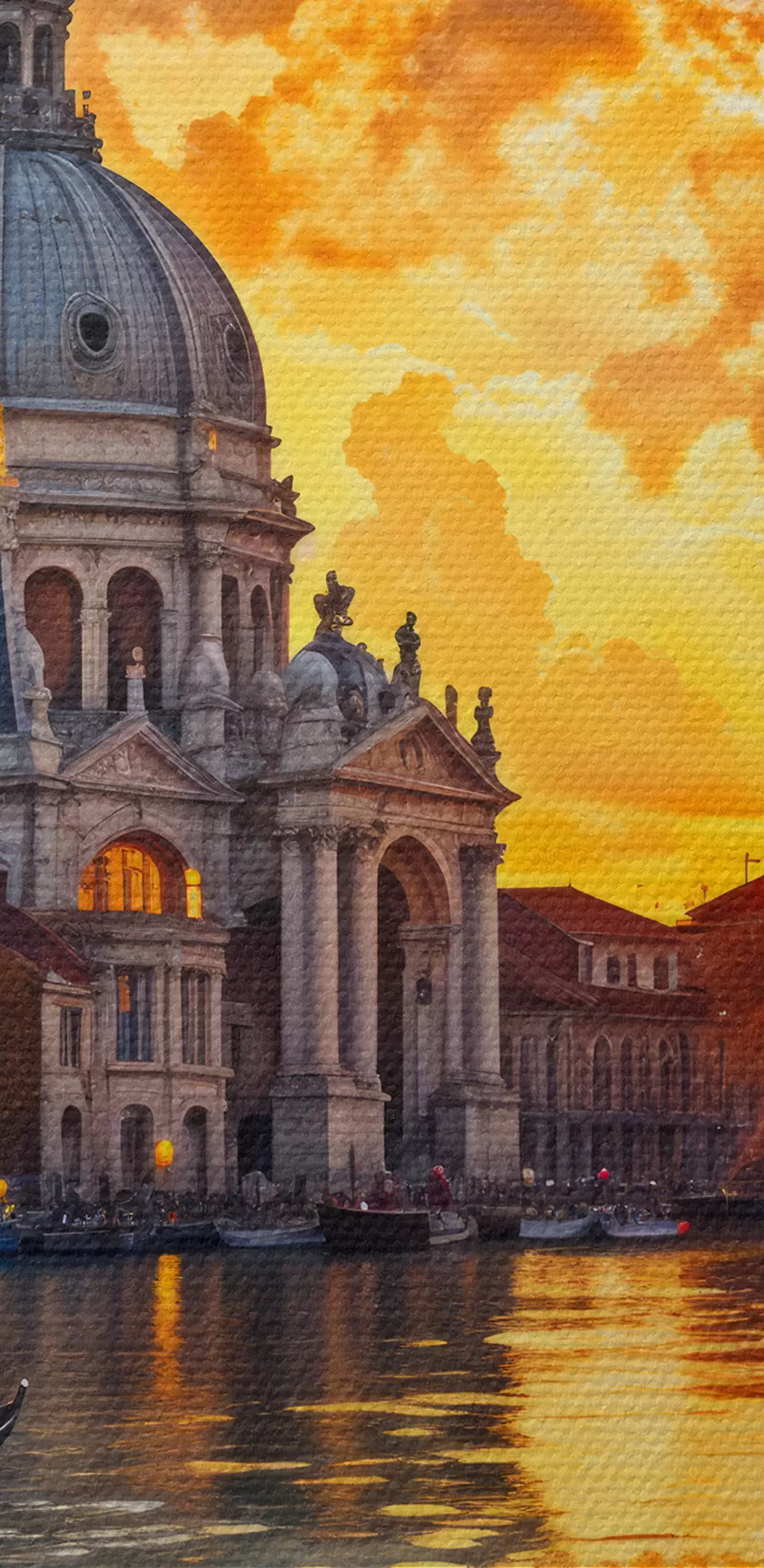 Schilderij Een kleurrijke en dramatische zonsondergang boven het Canal Grande in Venetië, Italië aquarelkunst Art. s40027