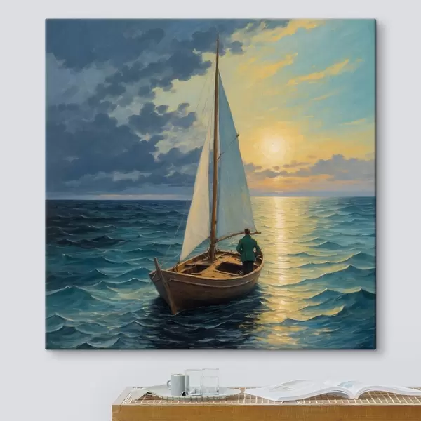 Schilderij Man drijvend op de zee in een boot Art. s40053