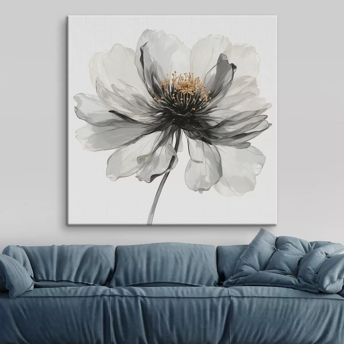 Schilderij Transparante zwarte bloem op witte achtergrond Art. s40066