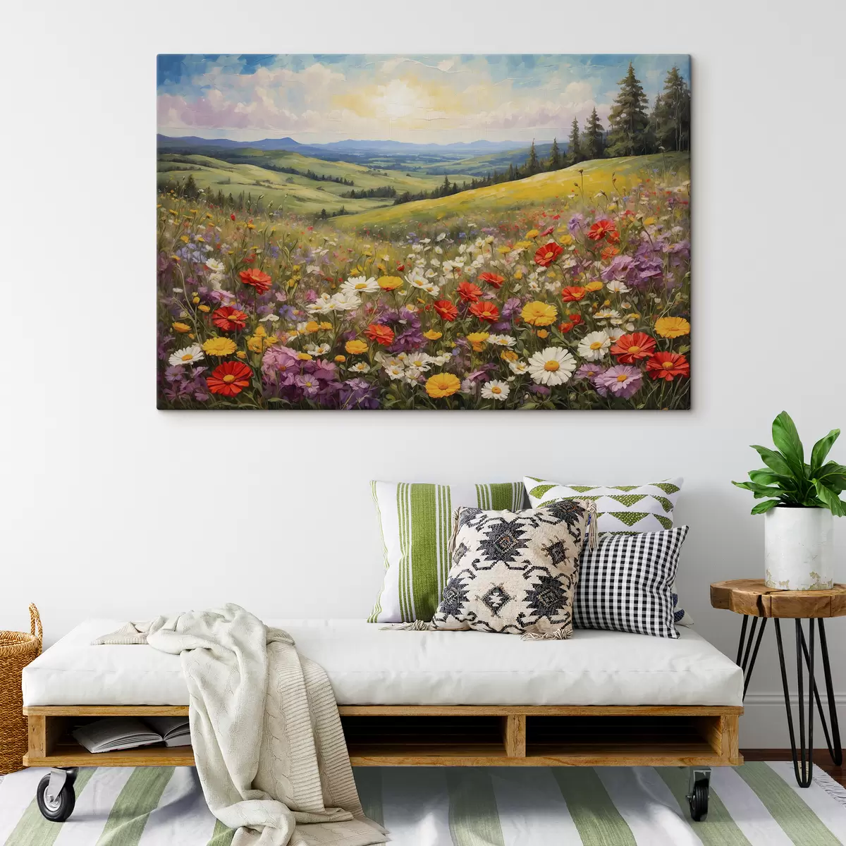 Schilderijen Bloemenveld bij zonsondergang s40073
