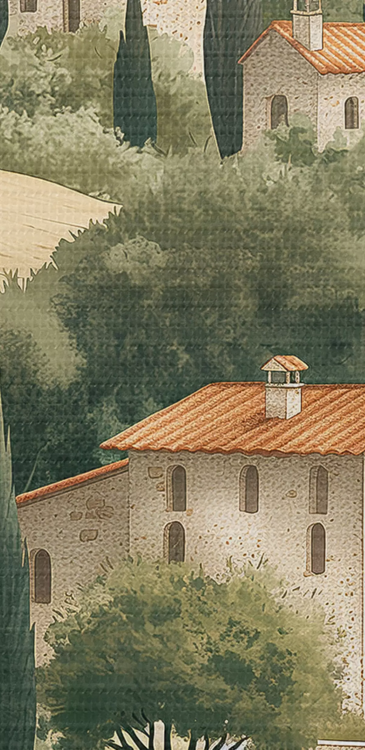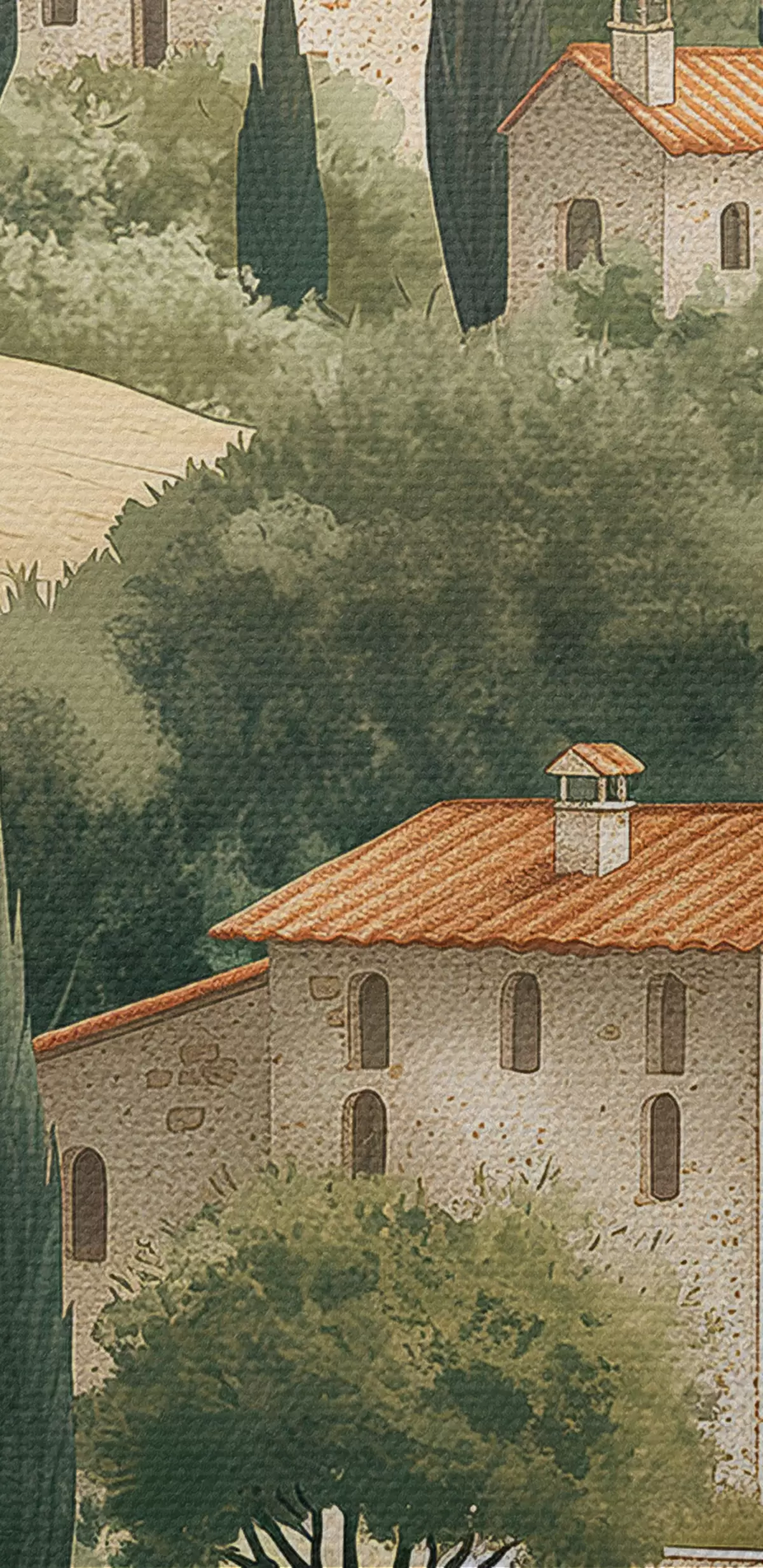Schilderij Toscaans landschap met oude huizen, pastelkleuren, heuvels en bomen, rustiek Art. s40082