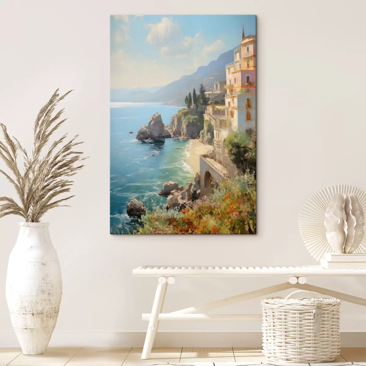 Schilderijen Uitzicht op de zeebaai, bergen in Italië vanuit het hotel imitatie van olieverfschilderij s40088