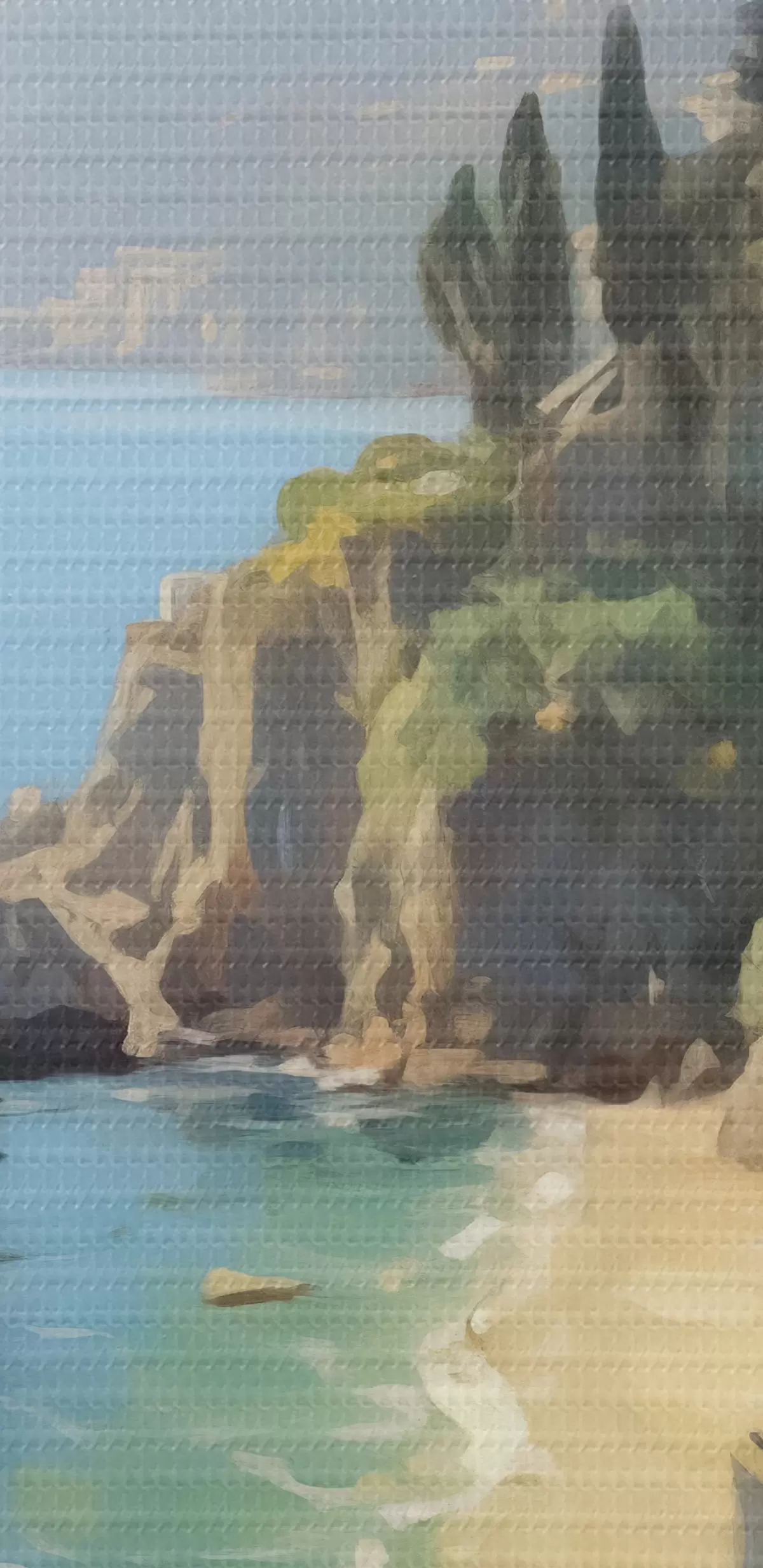 Schilderij Uitzicht op de zeebaai, bergen in Italië vanuit het hotel imitatie van olieverfschilderij Art. s40088