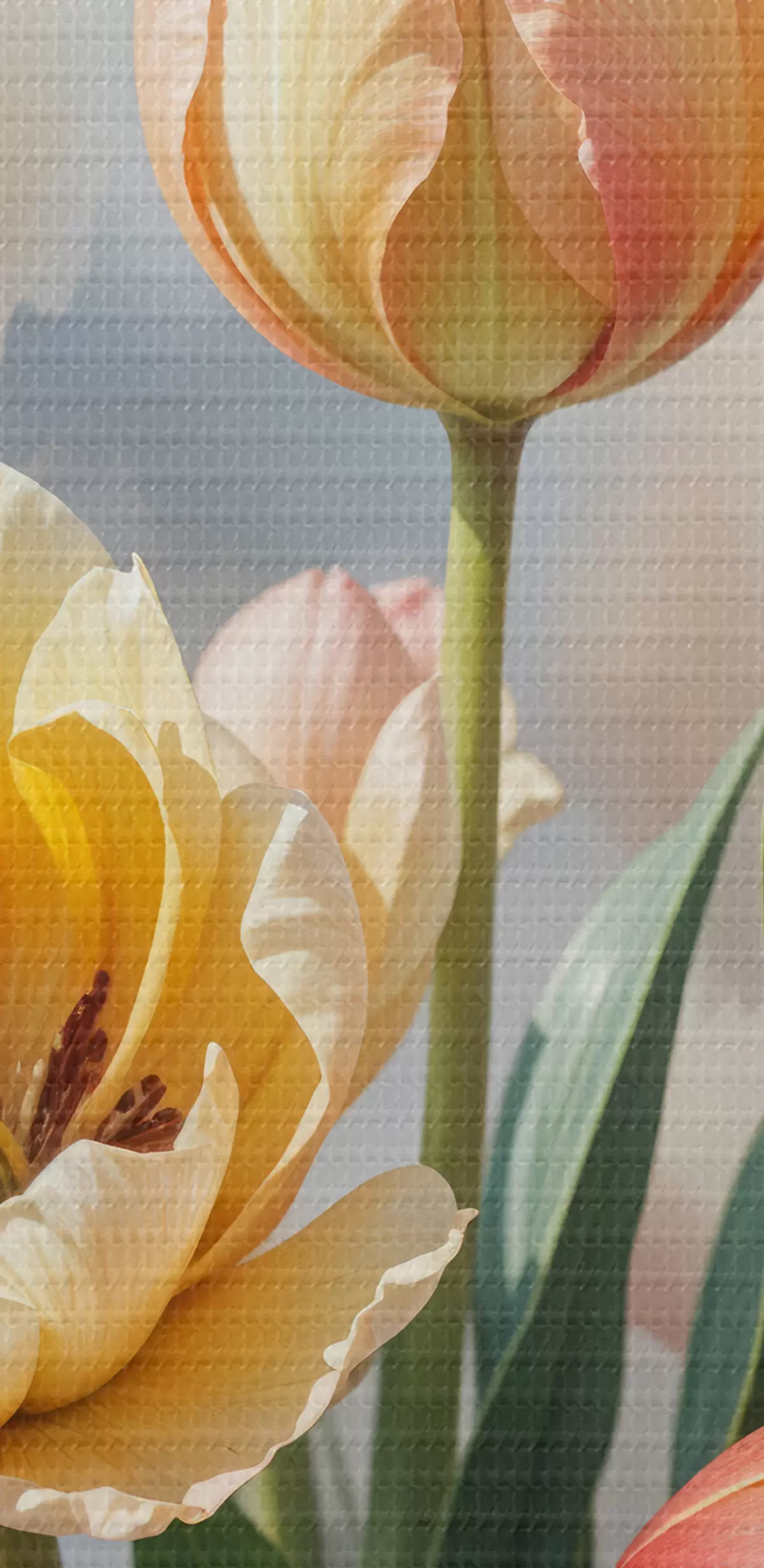 Er zijn drie soorten materiaal te bestellen: Economic Canvas - een dicht en duurzaam materiaal voor digitaal printen, identiek aan schildersdoek, waterdicht oppervlak, realistische weergave van details, materiaal met gemiddelde korrel. Premium Canvas - de textuur lijkt op die van schildersdoek (verweven kleine draden). Zachte, gedetailleerde reproductie van de afbeelding op een mat oppervlak. Eco-Premium - hoogwaardige 100% katoenen stof. Dankzij de natuurlijke katoenvezels is het materiaal duurzaam en slijtvast. Uitstekende kleurweergave en detail.