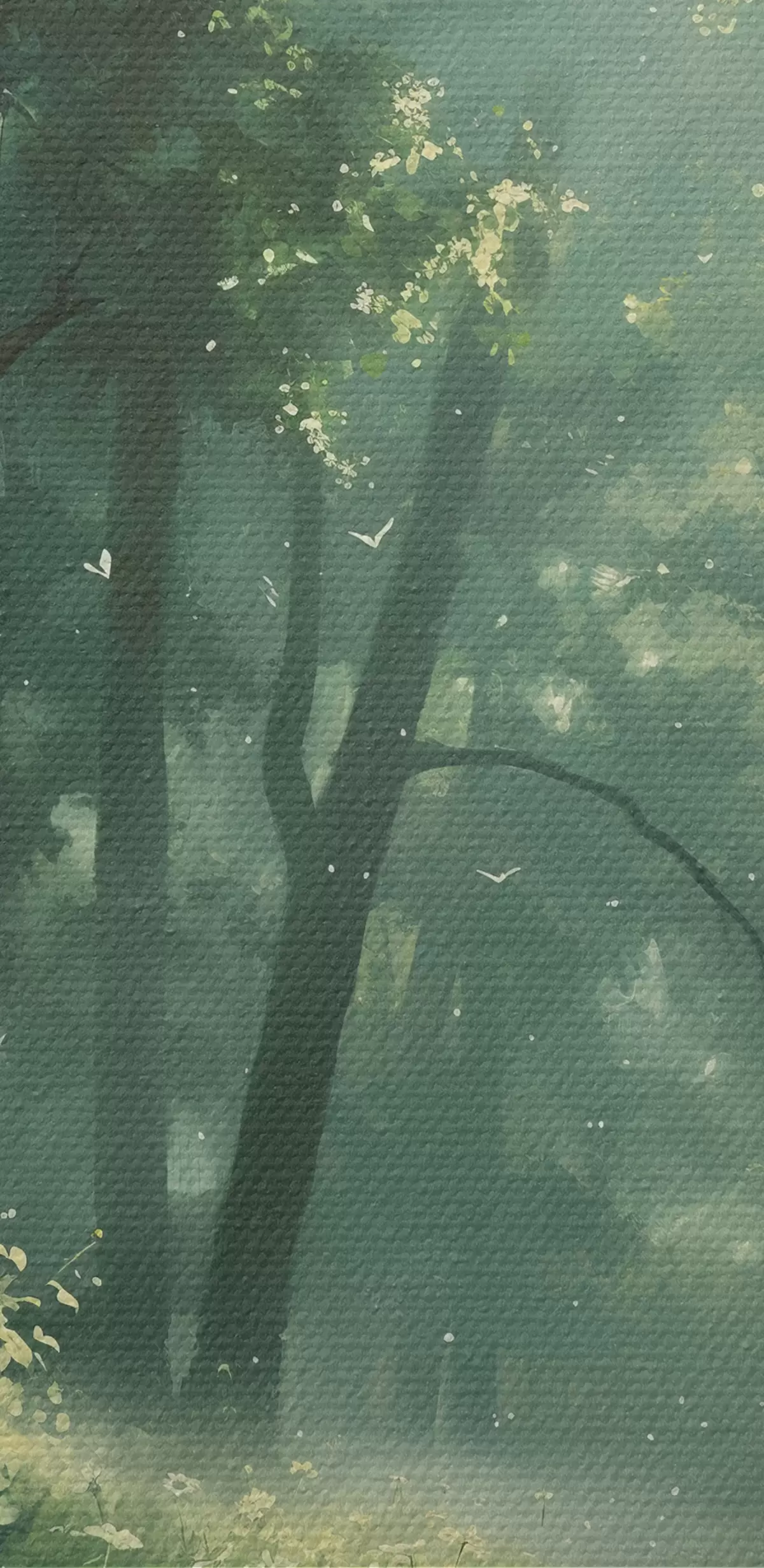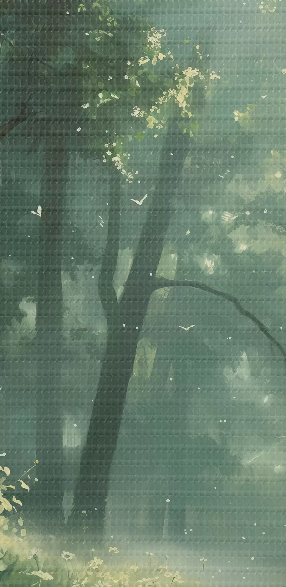 Schilderijen Dicht bos met zonlicht in de bomen, kamillebloemen, groen gras, natuur s40224