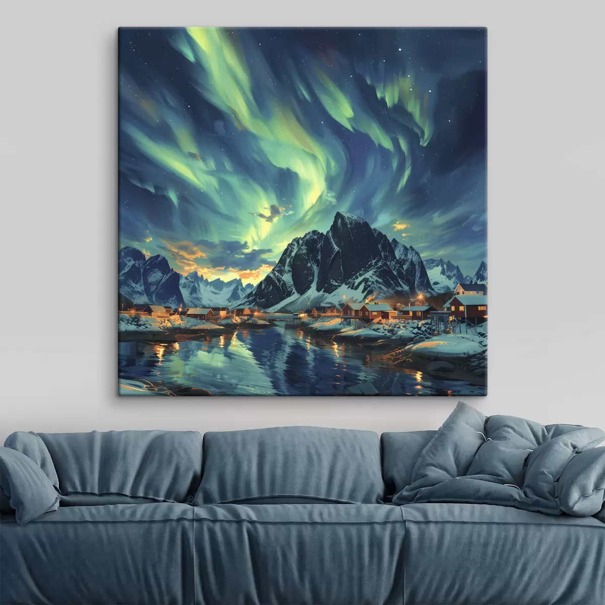 Schilderij Lofoten eilanden, Noorderlicht, winterdorp Art. s40299