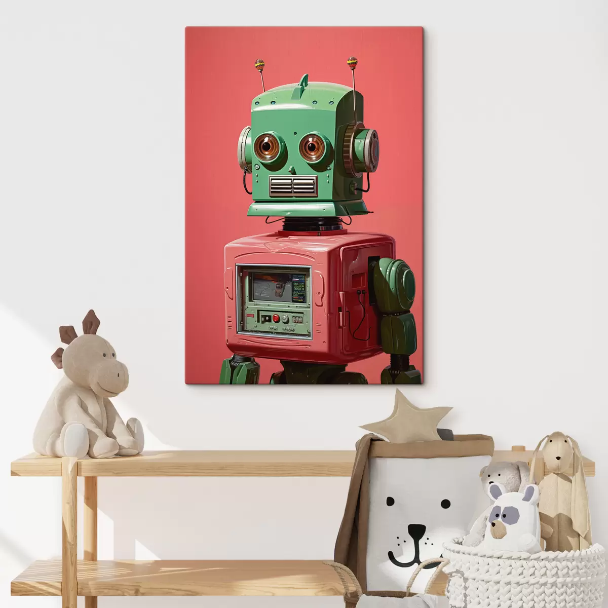 Schilderij Android-robot met groen hoofd op roze achtergrond Art. s40314