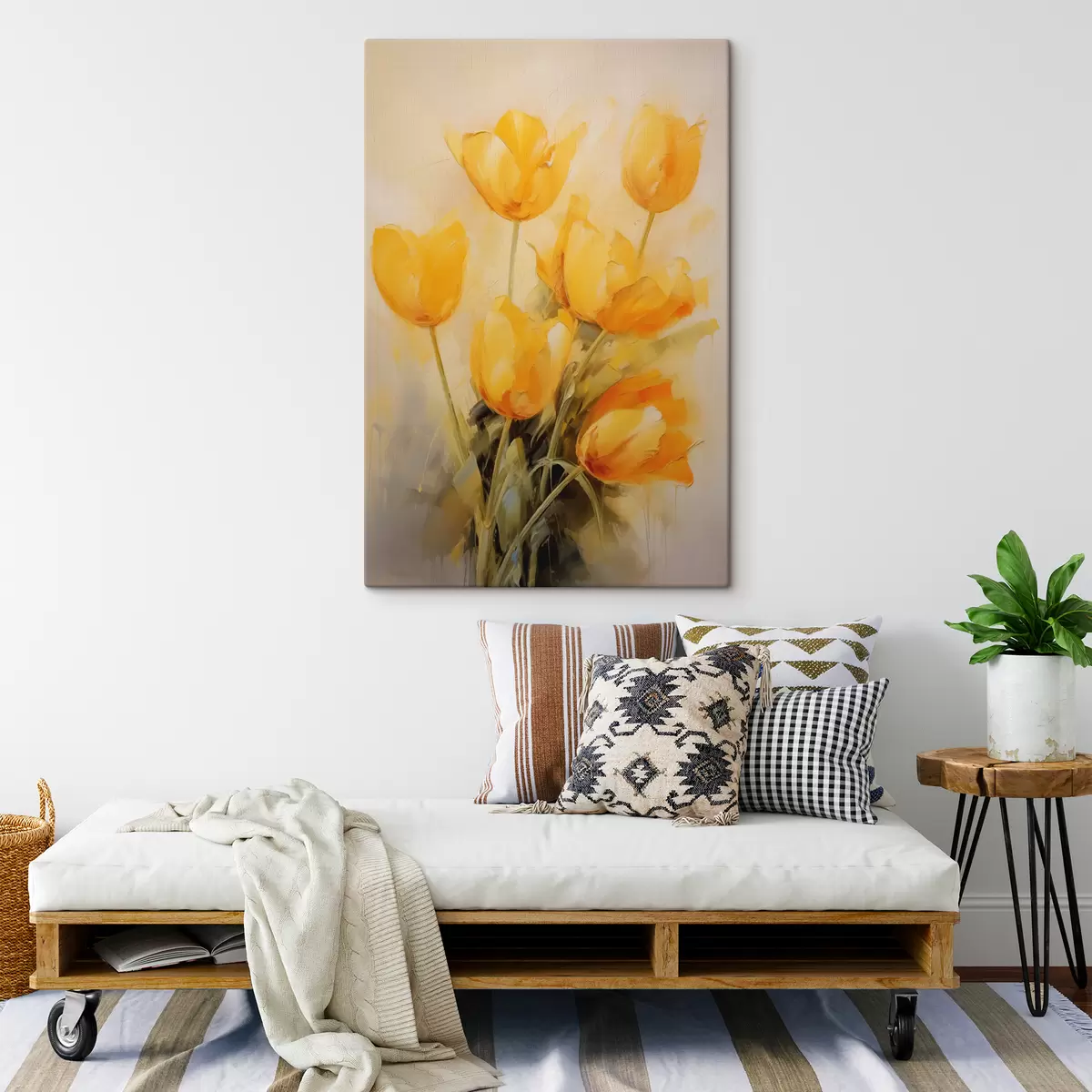 Schilderij Gele tulpen imitatie olieverfschilderij Art. s40318