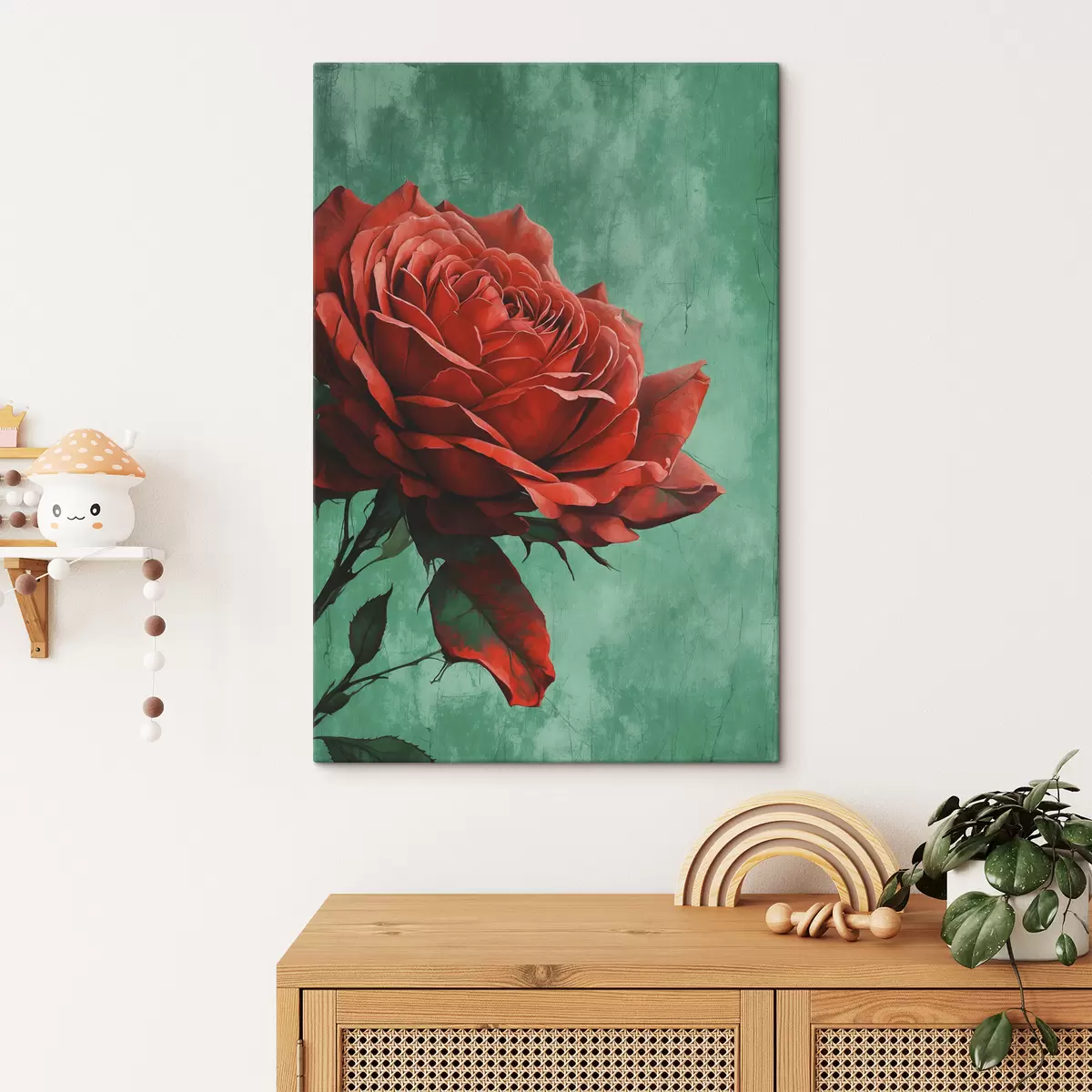 Schilderij Roos op groene achtergrond Art. s40339