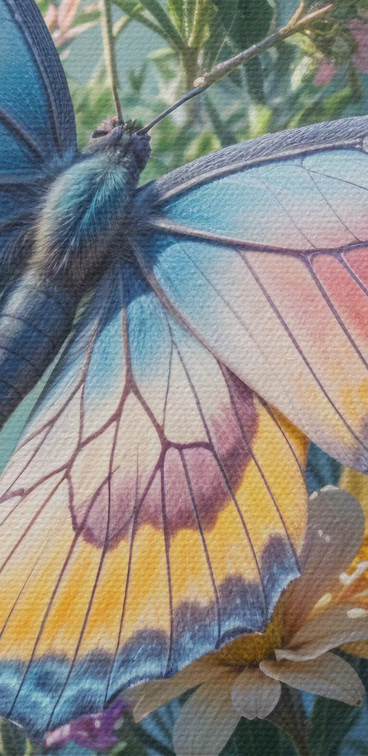 Het is een goedkopere versie van canvas. Het is duurzamer en vochtbestendiger, maar het oppervlak heeft niet zo'n uitgesproken textuur als Premium Canvas