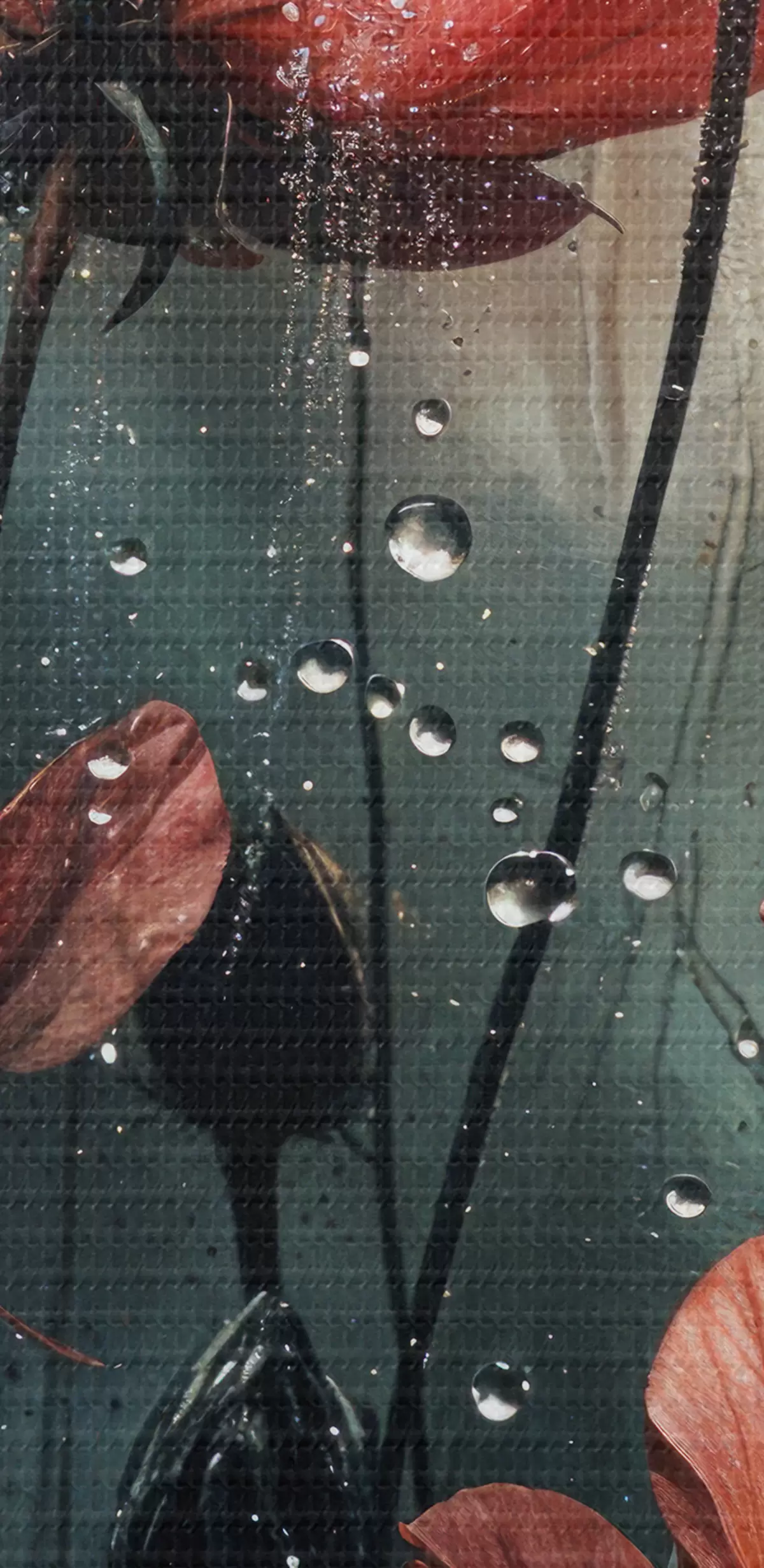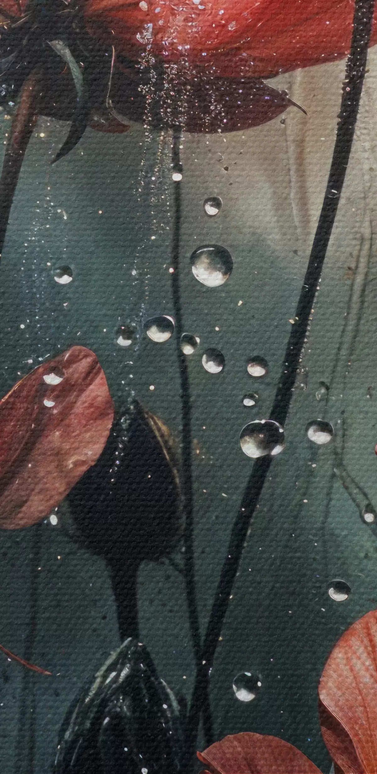 Schilderij Rode bloemen met waterdruppels tegen een wazige achtergrond Art. s40412