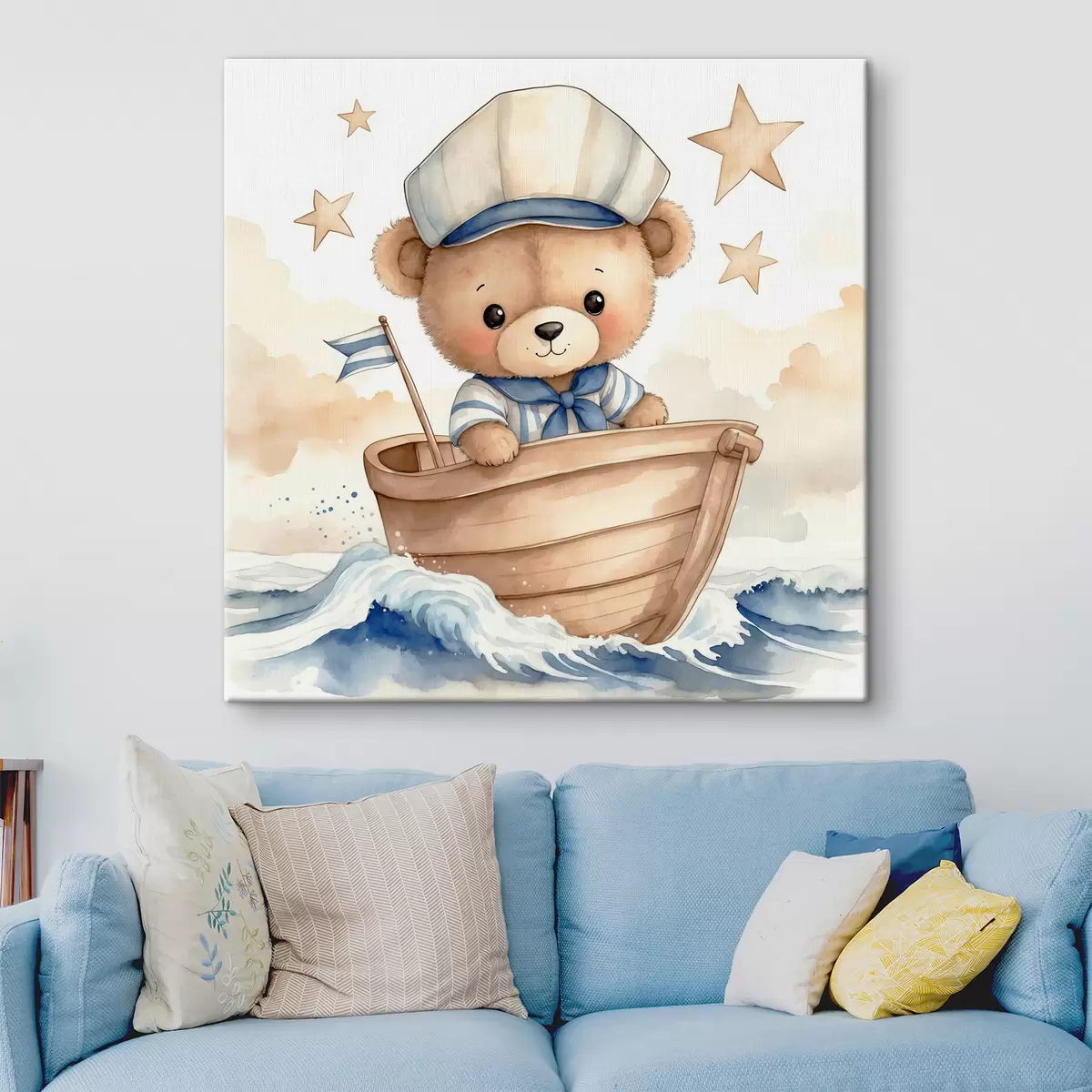 Schilderij Schattige aquarelbeer in een boot Art. s40428