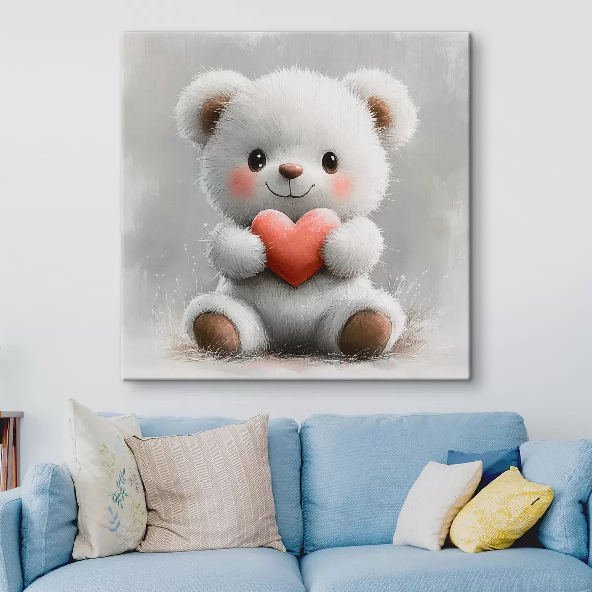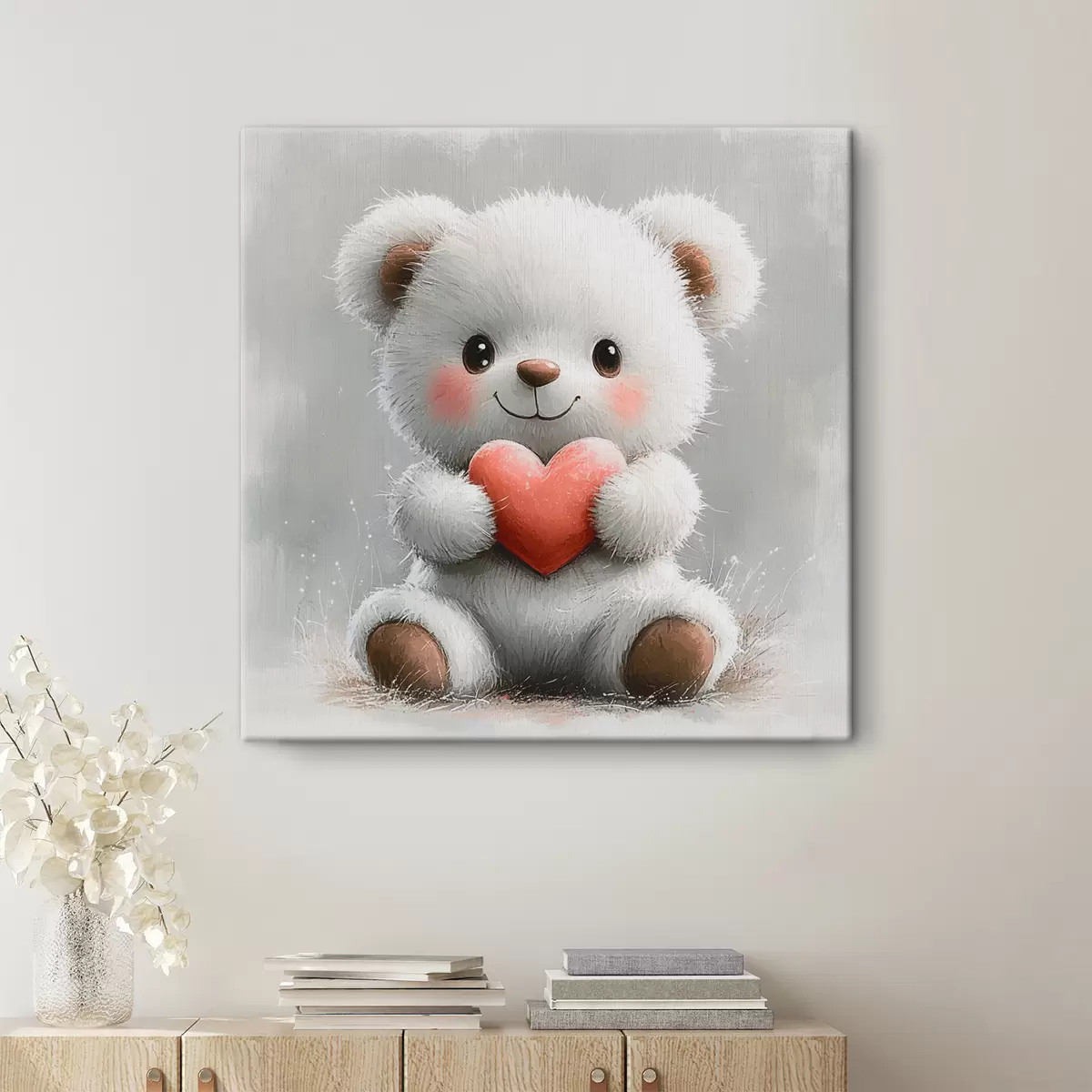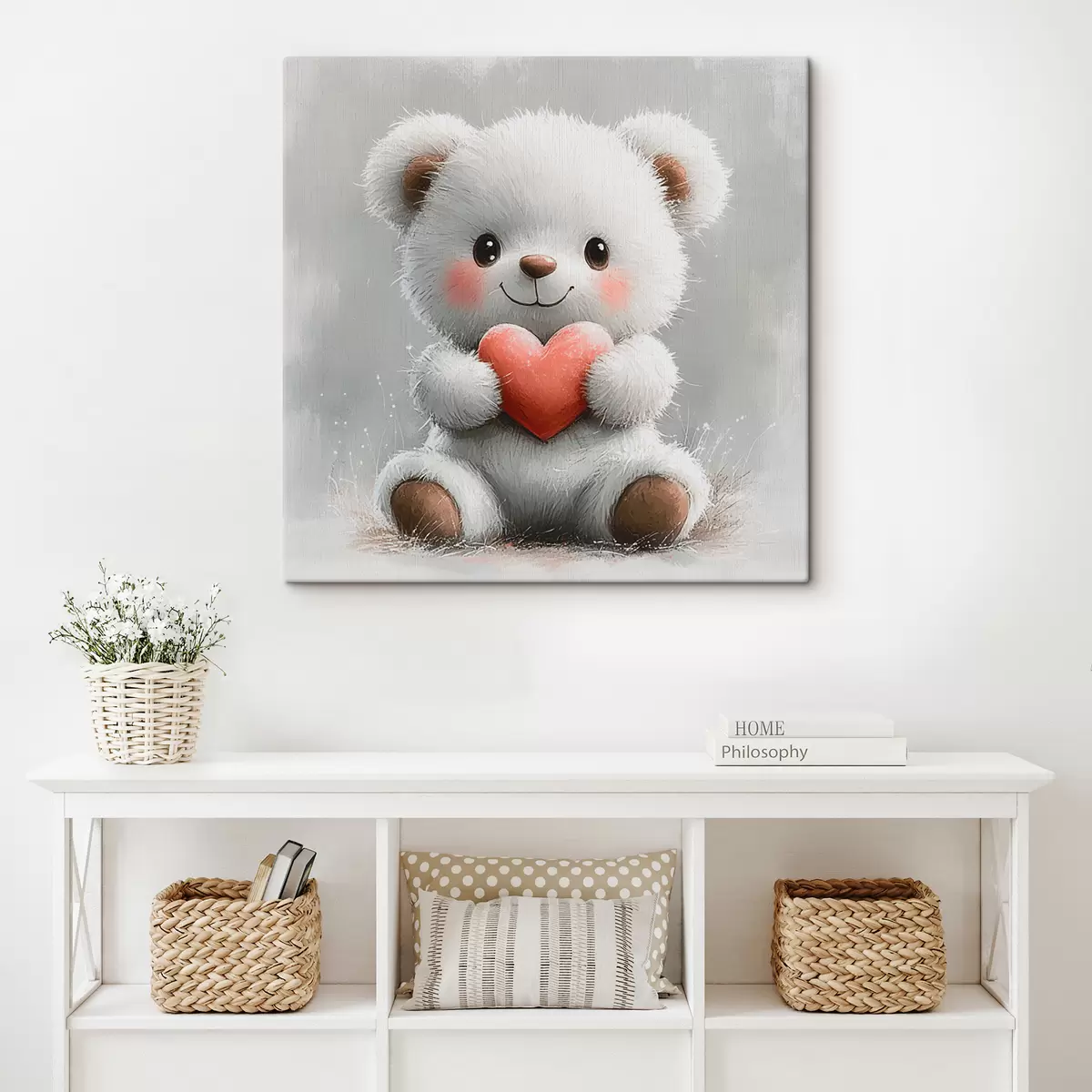 Schilderij Schattige beer met hart in zijn poten Art. s40432