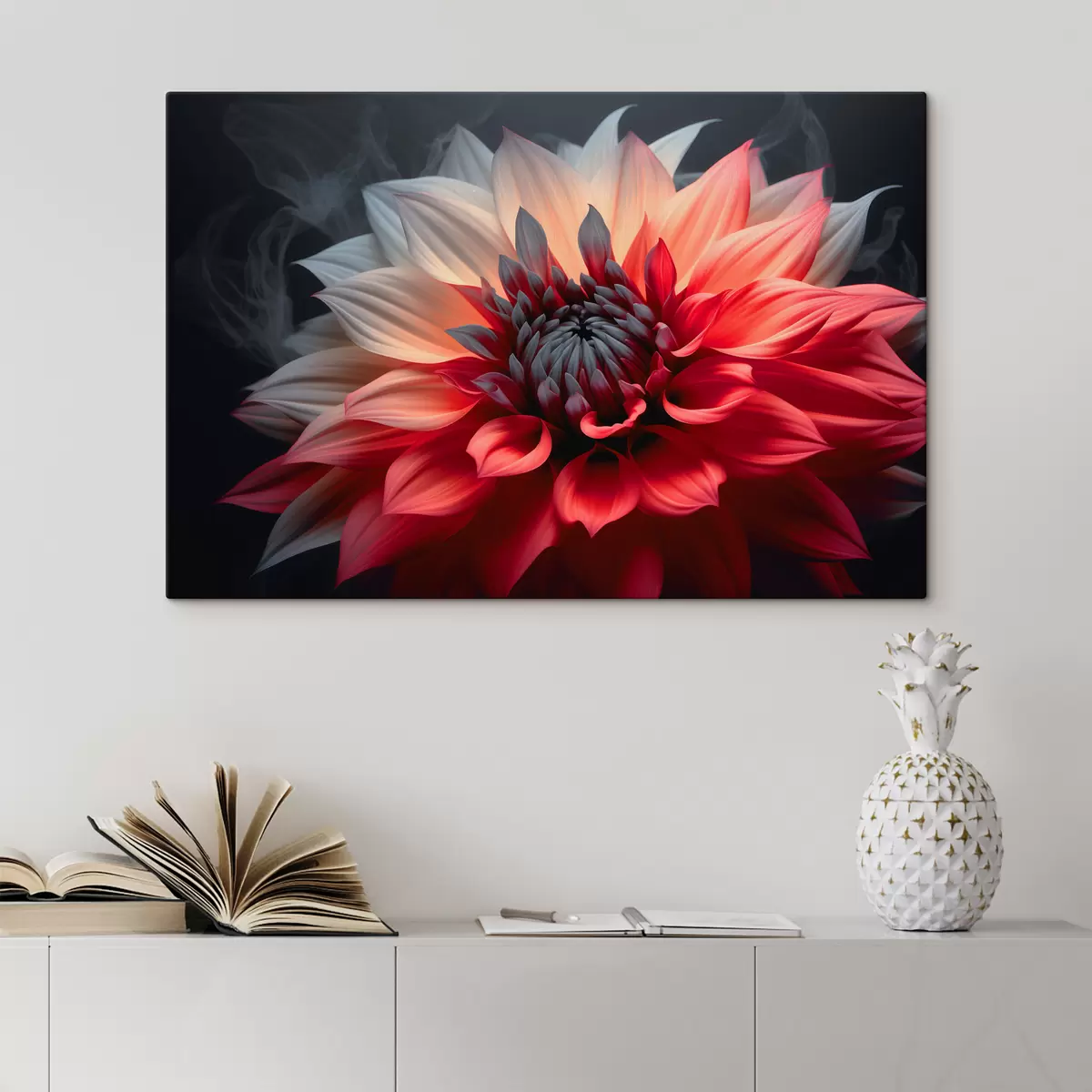 Schilderijen Grote rode bloem op een donkere achtergrond s40506