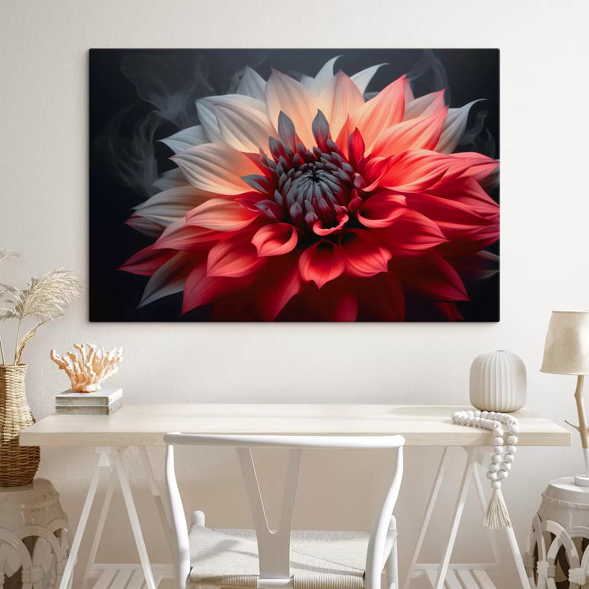 Schilderij Grote rode bloem op een donkere achtergrond Art. s40506