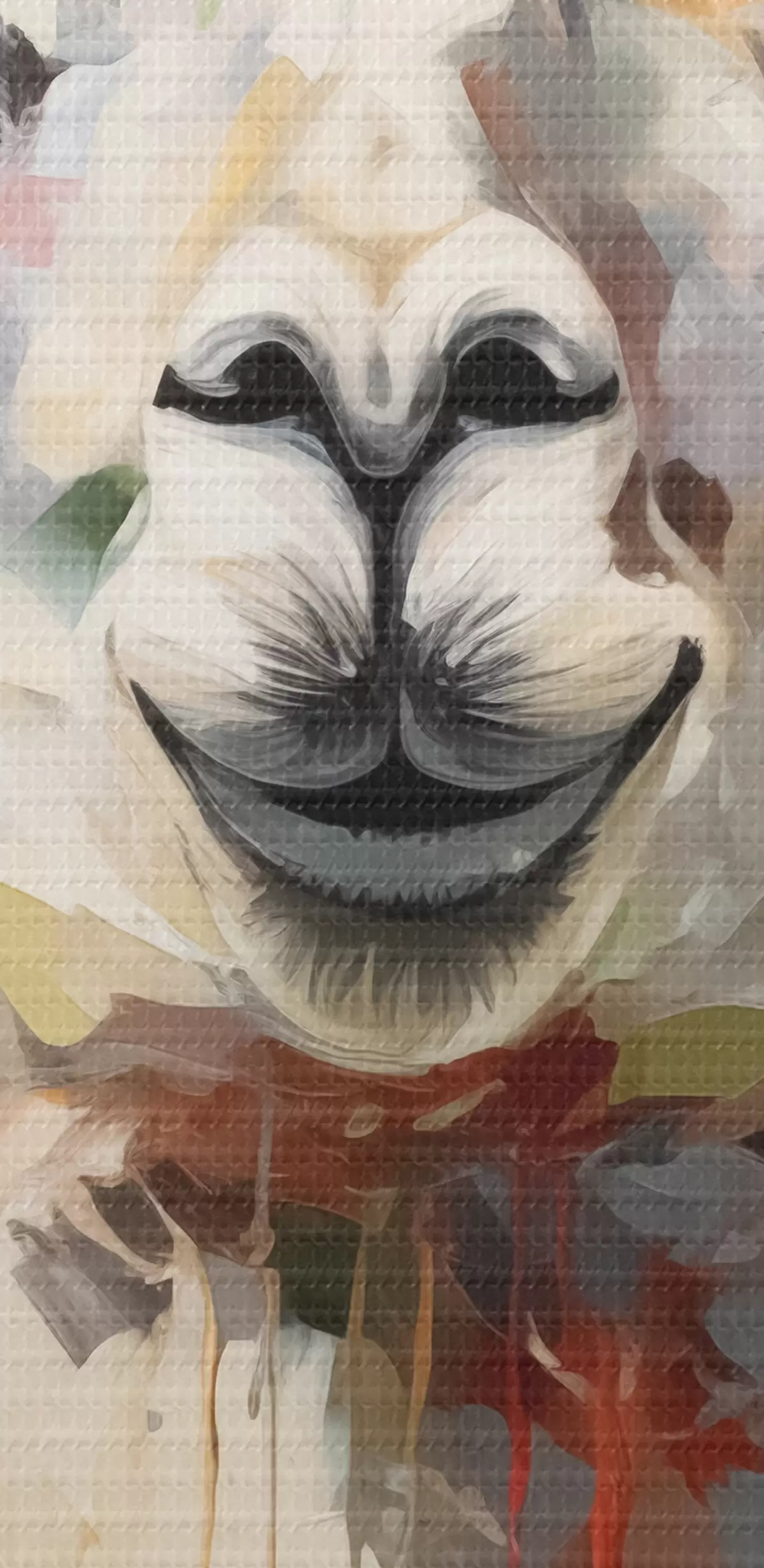 Schilderij Witte lama met verfvlekken op pastelblauwgrijze achtergrond Art. s40523