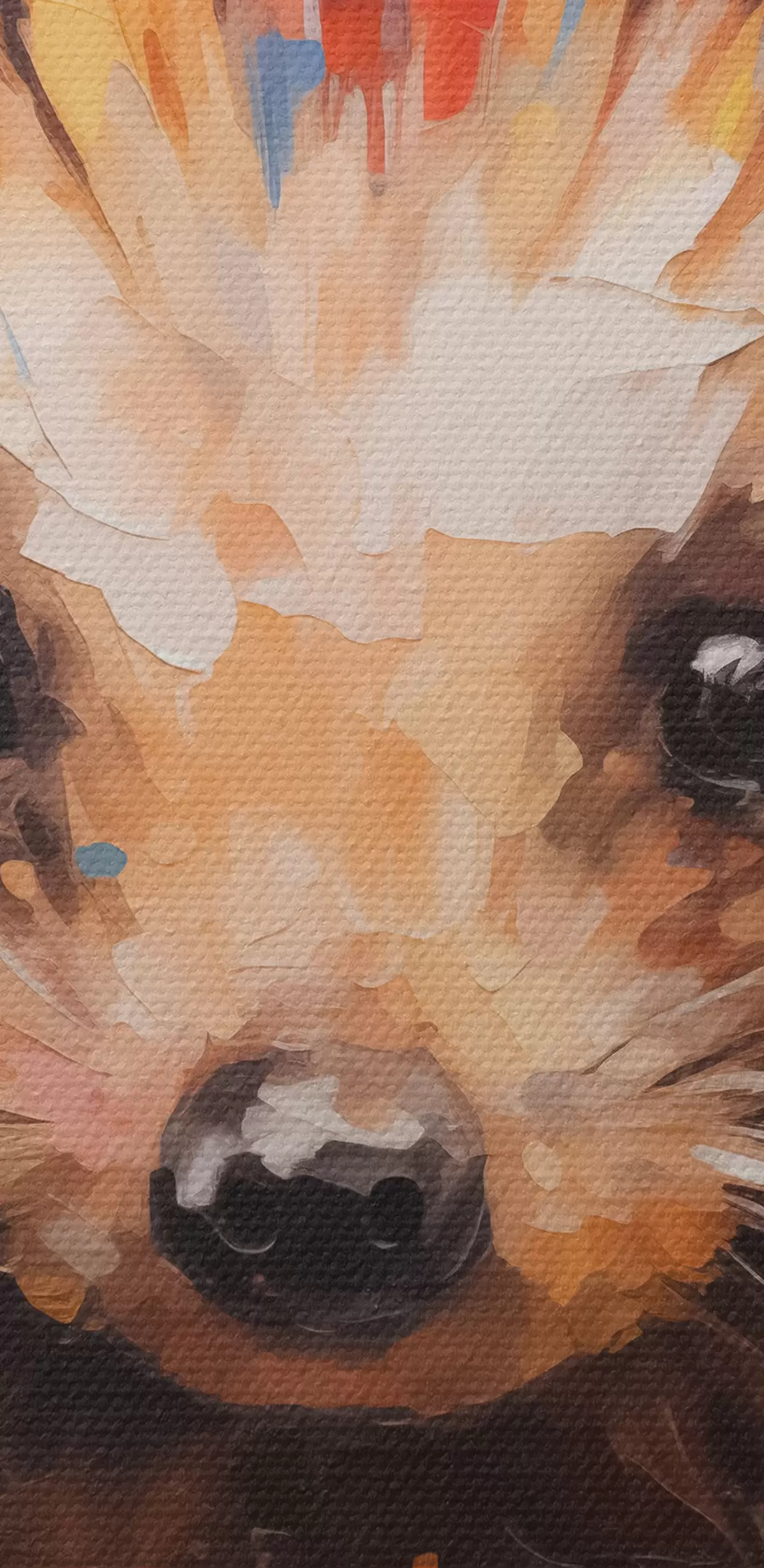 Schilderij Portret van een egel in felle kleuren, geel, paars, blauw, oranje, bruin Art. s40532