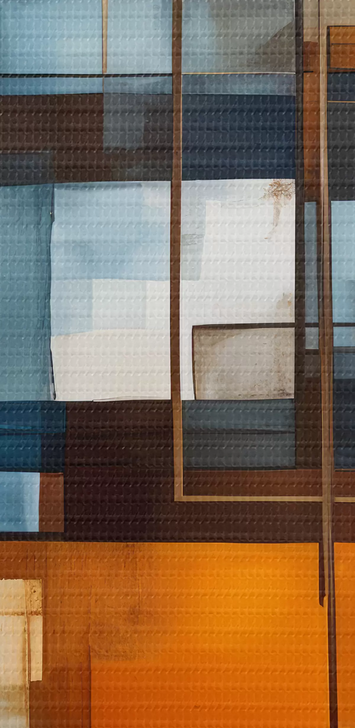 Schilderij Abstracte geometrische vormen in tinten blauw, oranje en bruin creëren een moderne minimalistische compositie Art. s40563