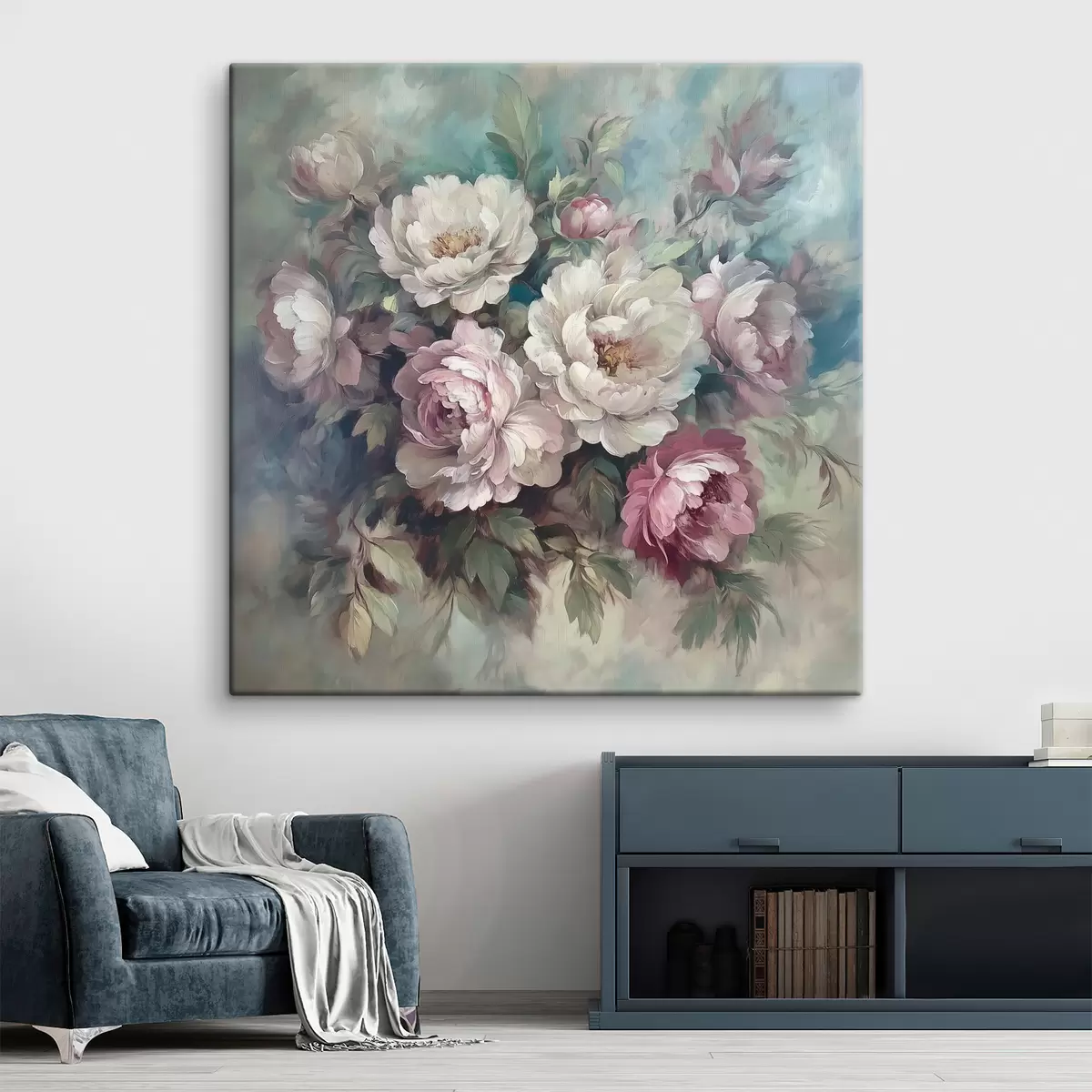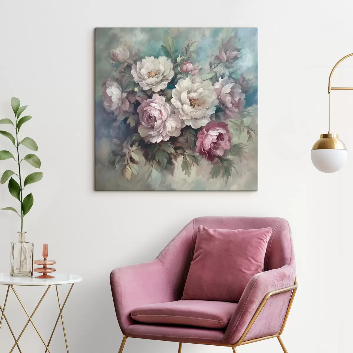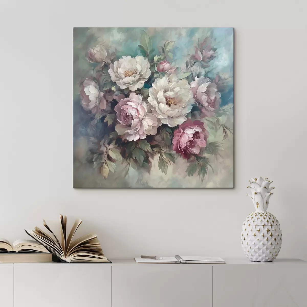 Schilderijen Boeket van roze en witte pioenrozen in olieverf s40582