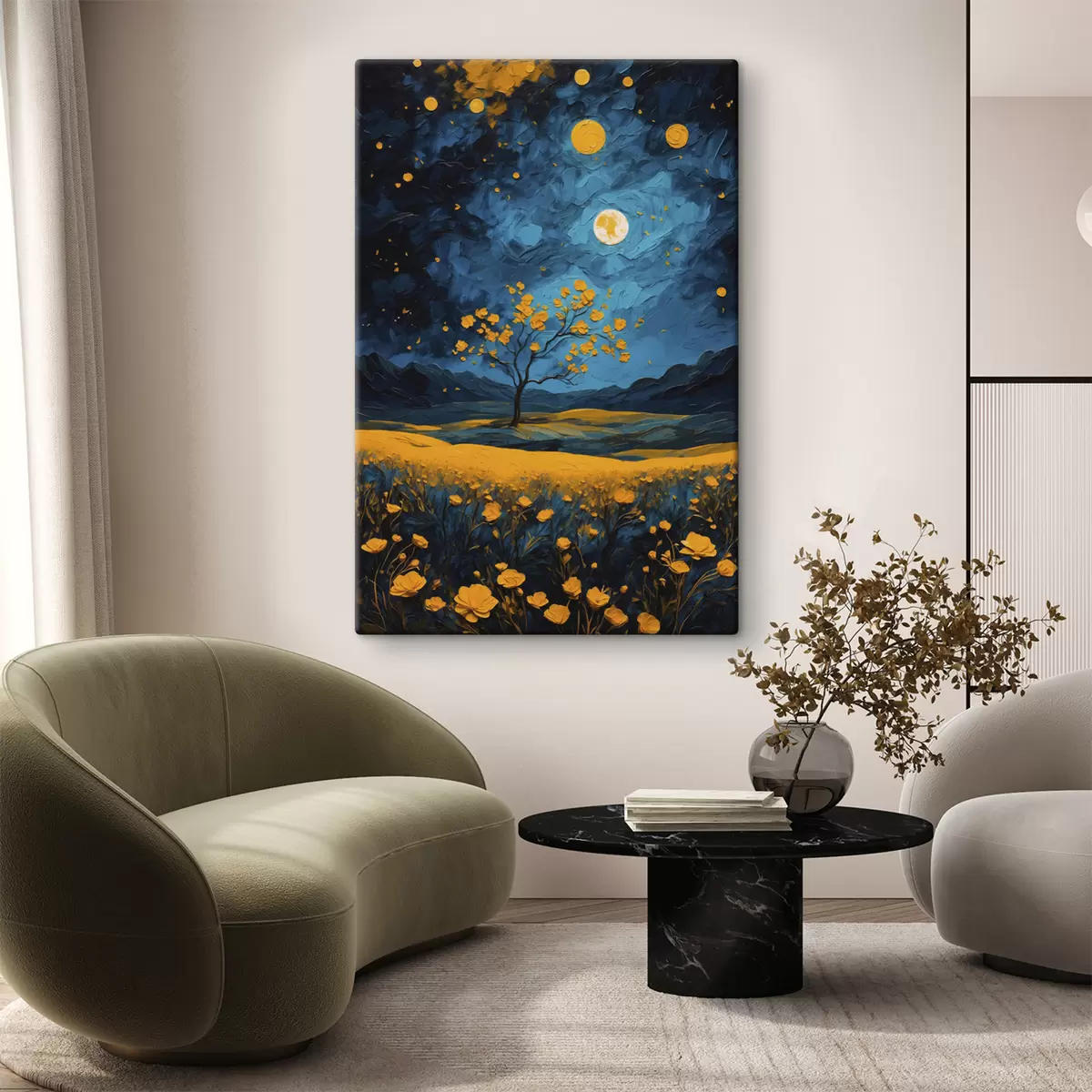 Schilderij Veld met gele bloemen bij nacht Art. s40643