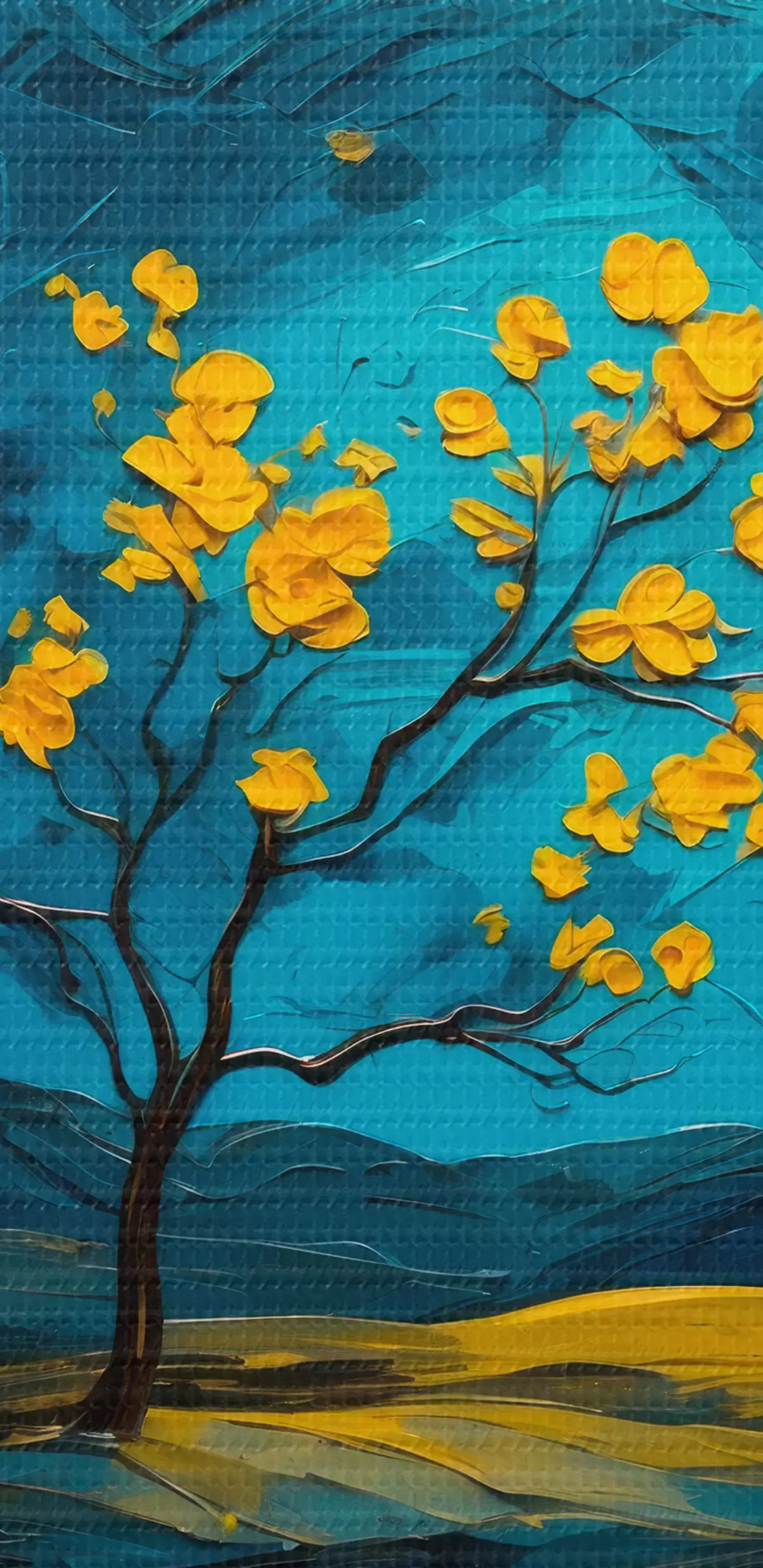 Het schilderij kan direct na ontvangst worden opgehangen. Het schilderij wordt opgespannen op een 2 cm breed houten spieraam.