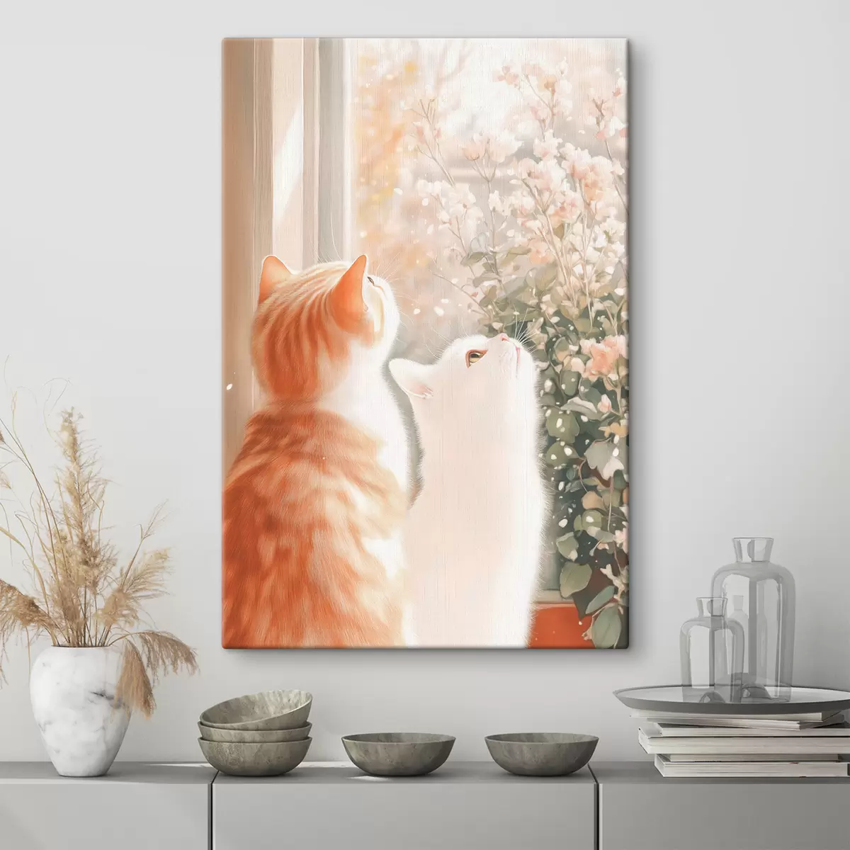Schilderij Potlood en aquarel illustratie van twee schattige katten die samen zitten Art. s40670