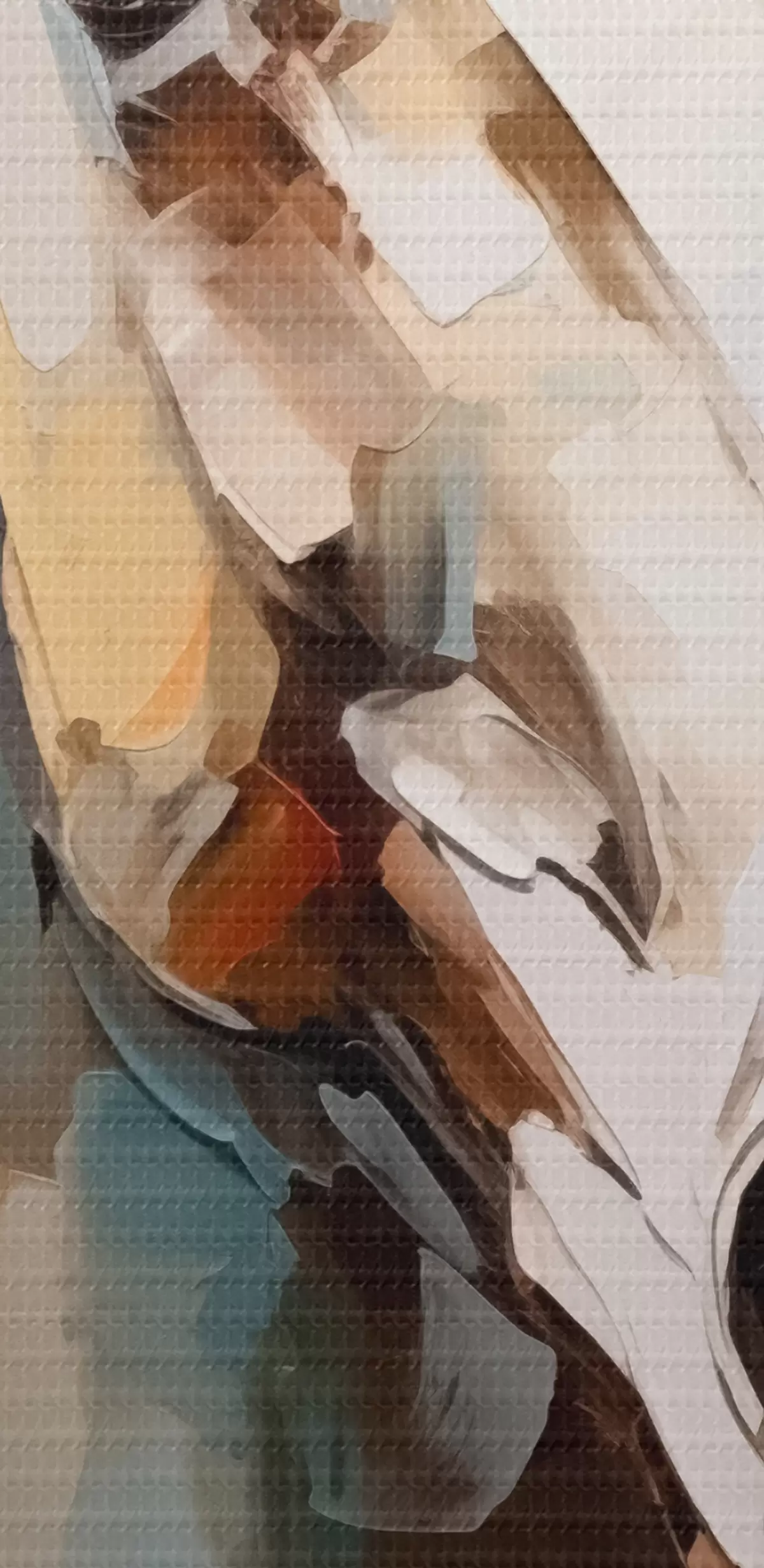 Het schilderij kan direct na ontvangst worden opgehangen. Het schilderij wordt opgespannen op een 2 cm breed houten spieraam.