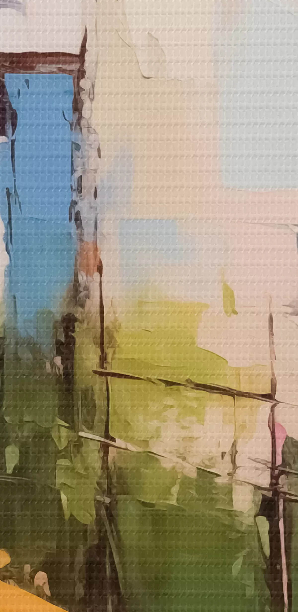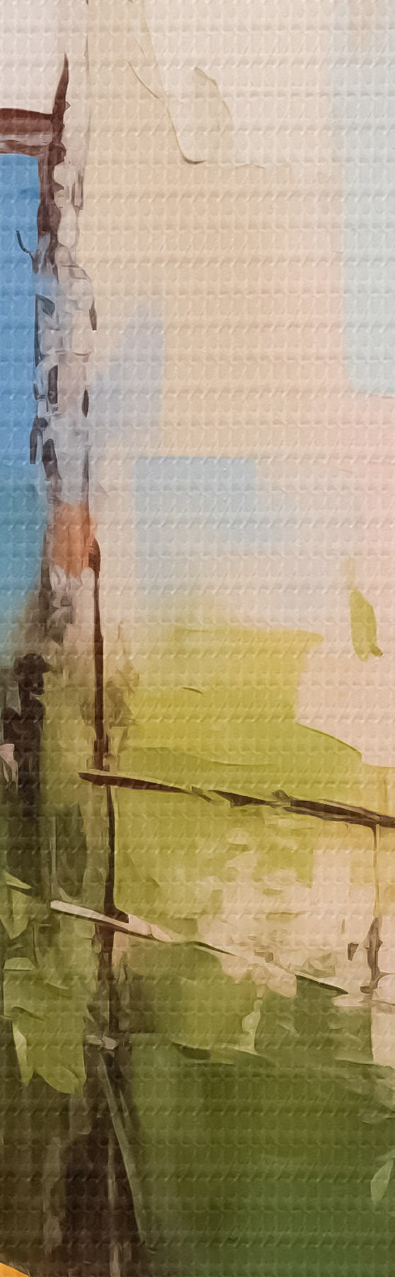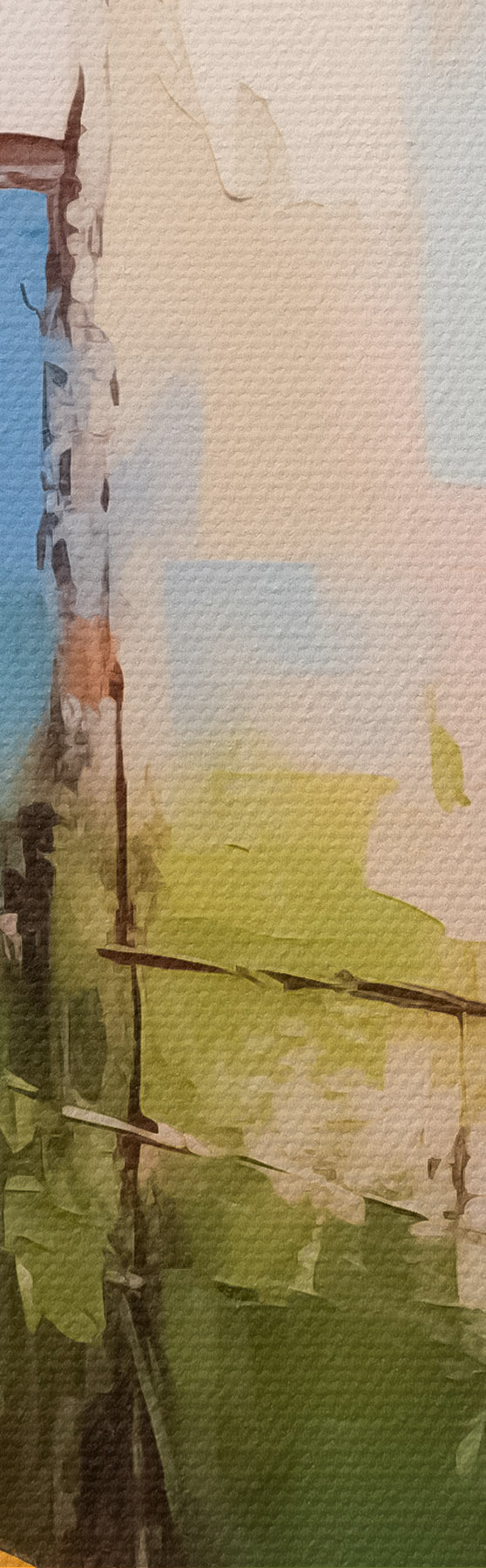 Het schilderij kan direct na ontvangst worden opgehangen. Het schilderij wordt opgespannen op een 2 cm breed houten spieraam.