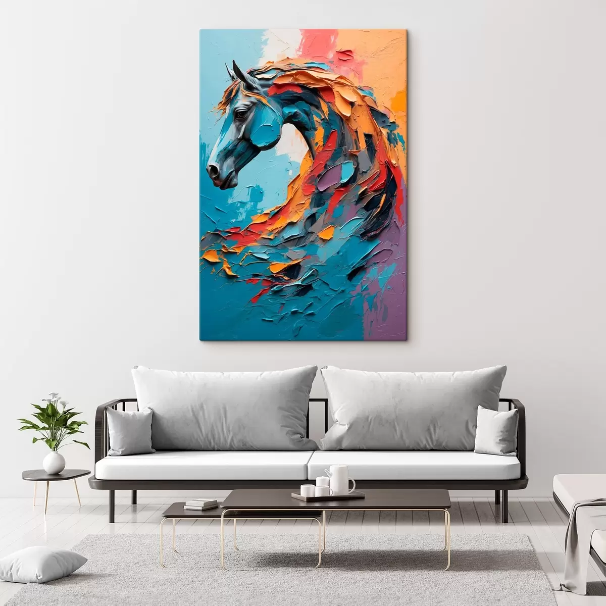 Het schilderij kan direct na ontvangst worden opgehangen. Het schilderij wordt opgespannen op een 2 cm breed houten spieraam.