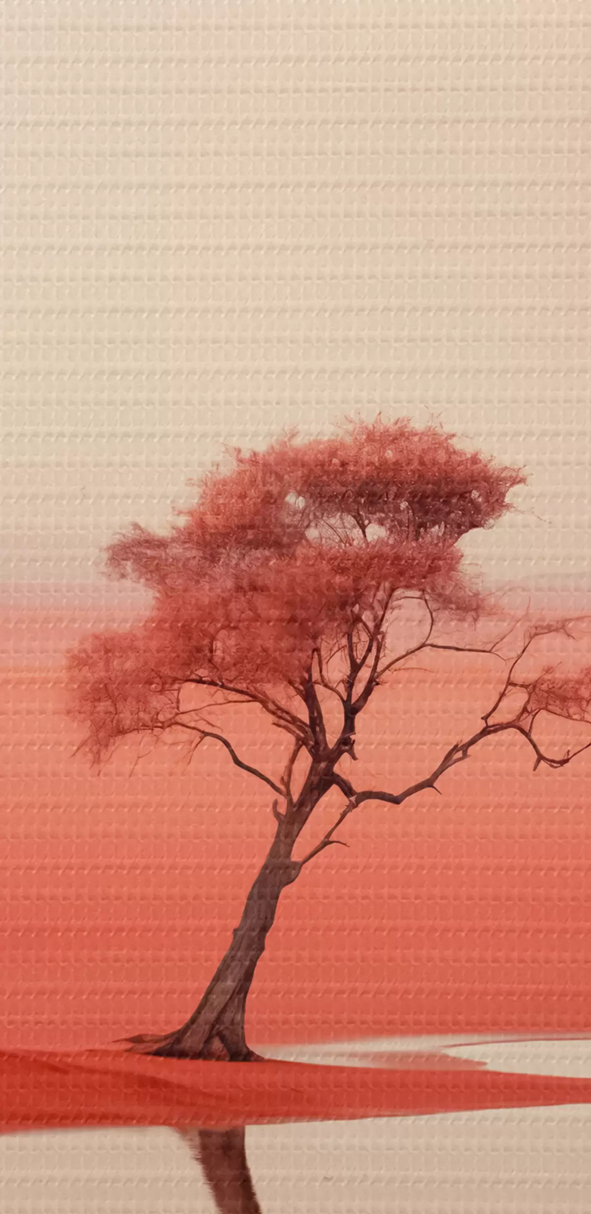 Schilderij Minimalistisch landschap boom bij de rivier, rode, grijze kleur Art. s40722