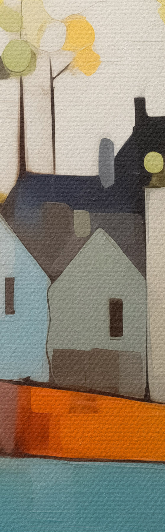 Schilderij Abstracte stad en huizen, blauw, geel, rode kleur Art. s40751
