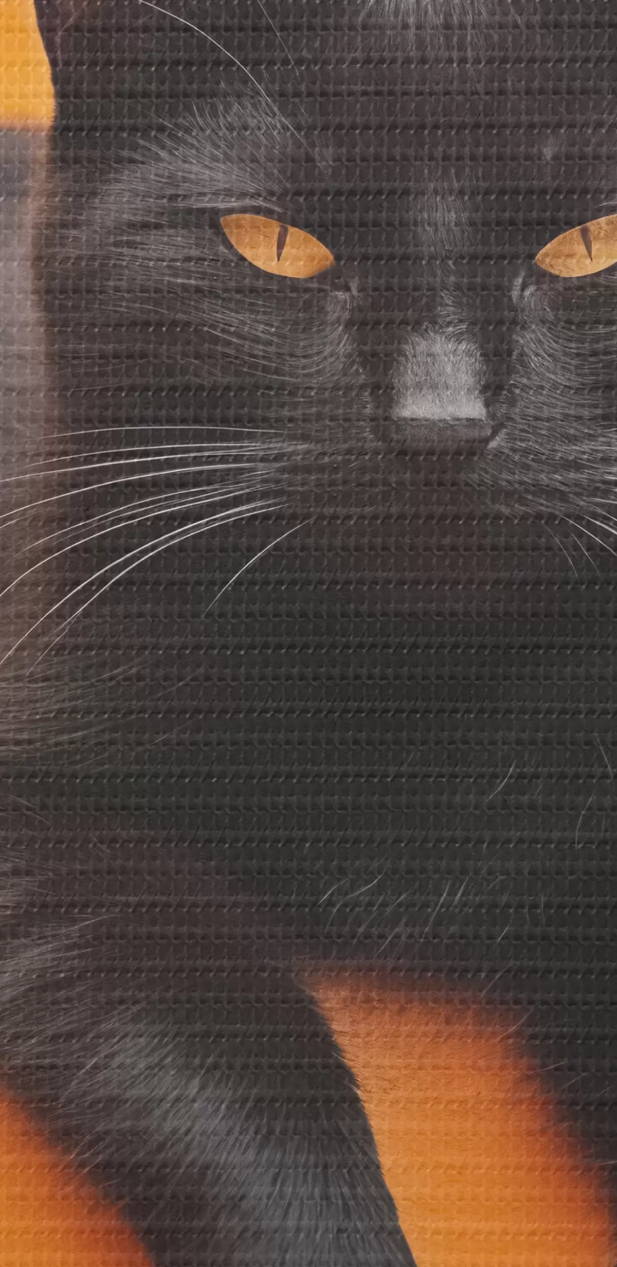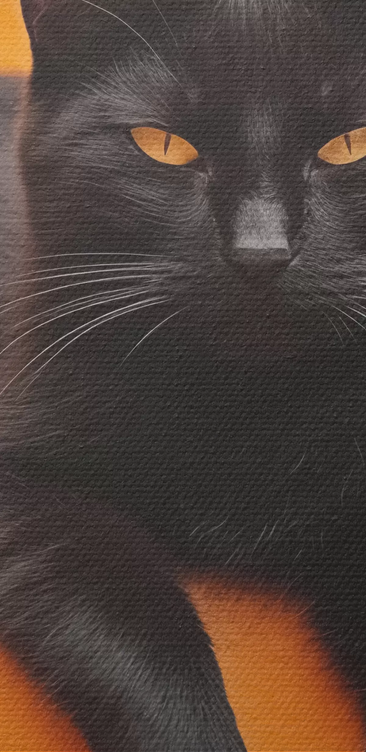 Schilderij Een zwarte kat ligt op gele treden Art. s40798