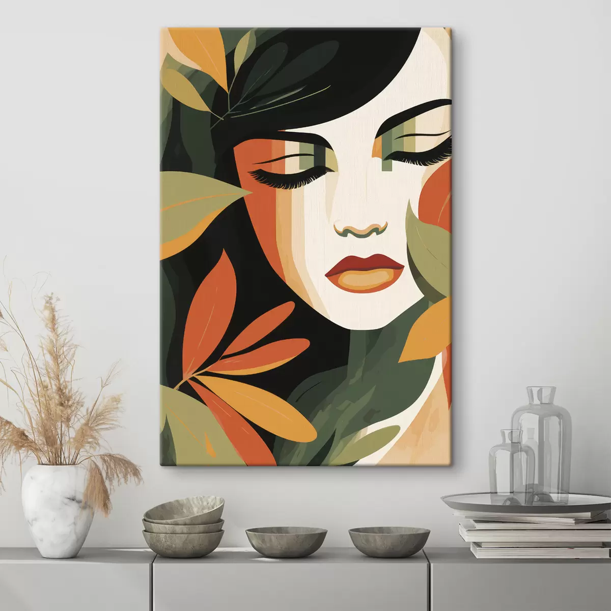 Schilderij Vrouw in de jungle, abstractie, felle kleuren Art. s40813