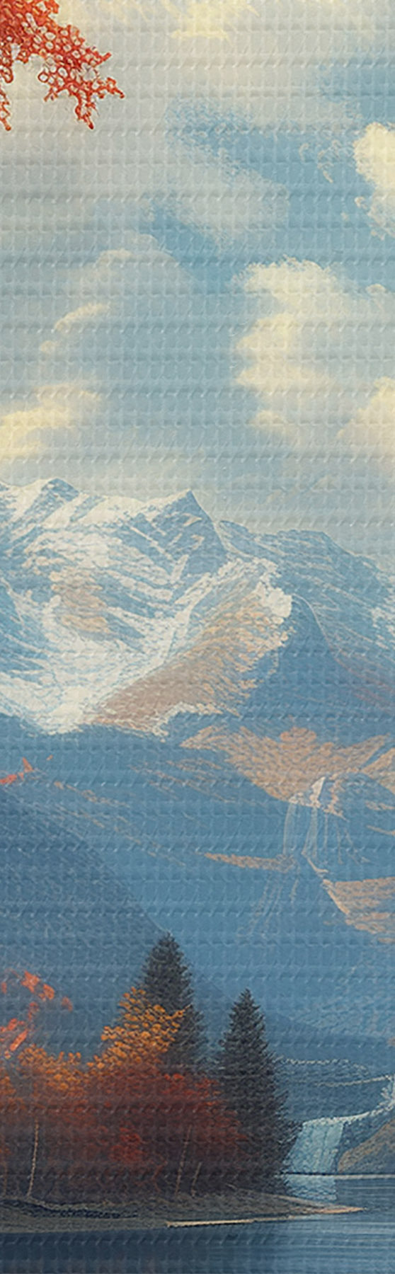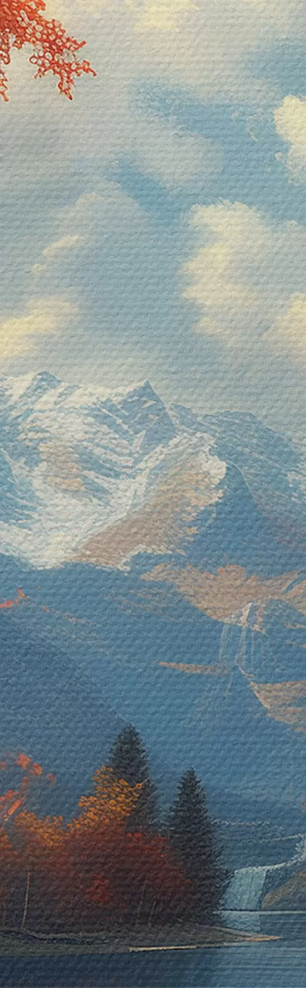 Schilderij Herfstlandschap tegen de achtergrond van bergen bij een vijver Art. s40903