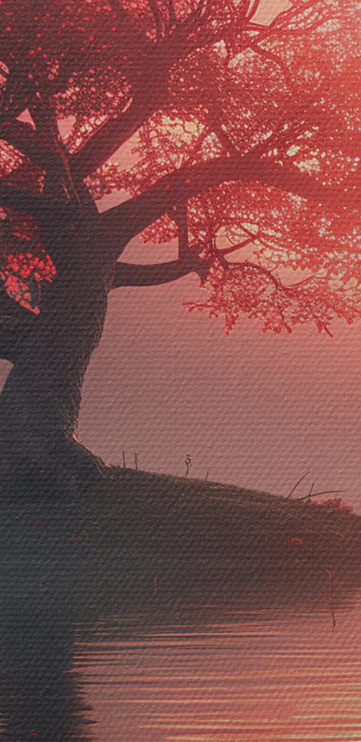 Schilderij Boom bij de vijver bij zonsondergang Art. s40934