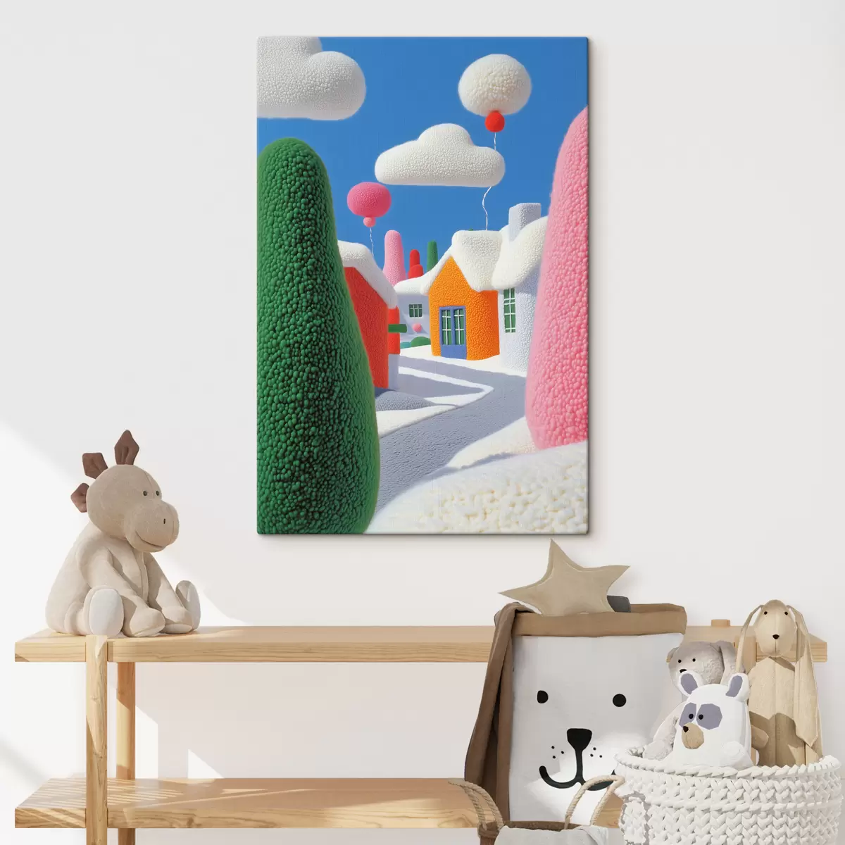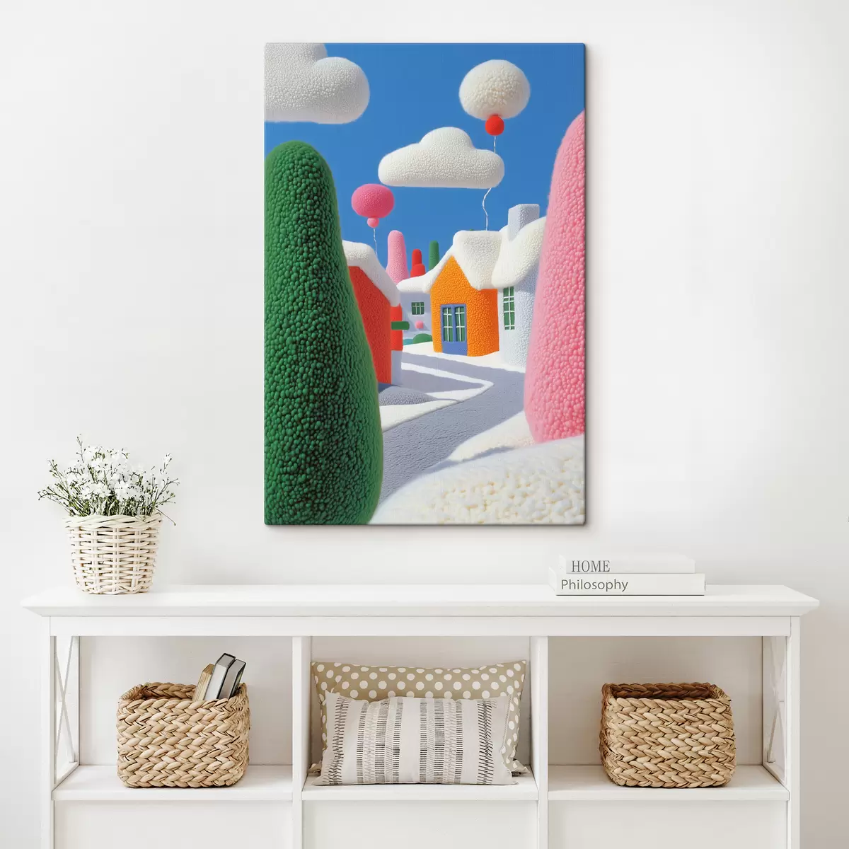 Schilderij Een straat met wolken en vilten ballonnen Art. s40970