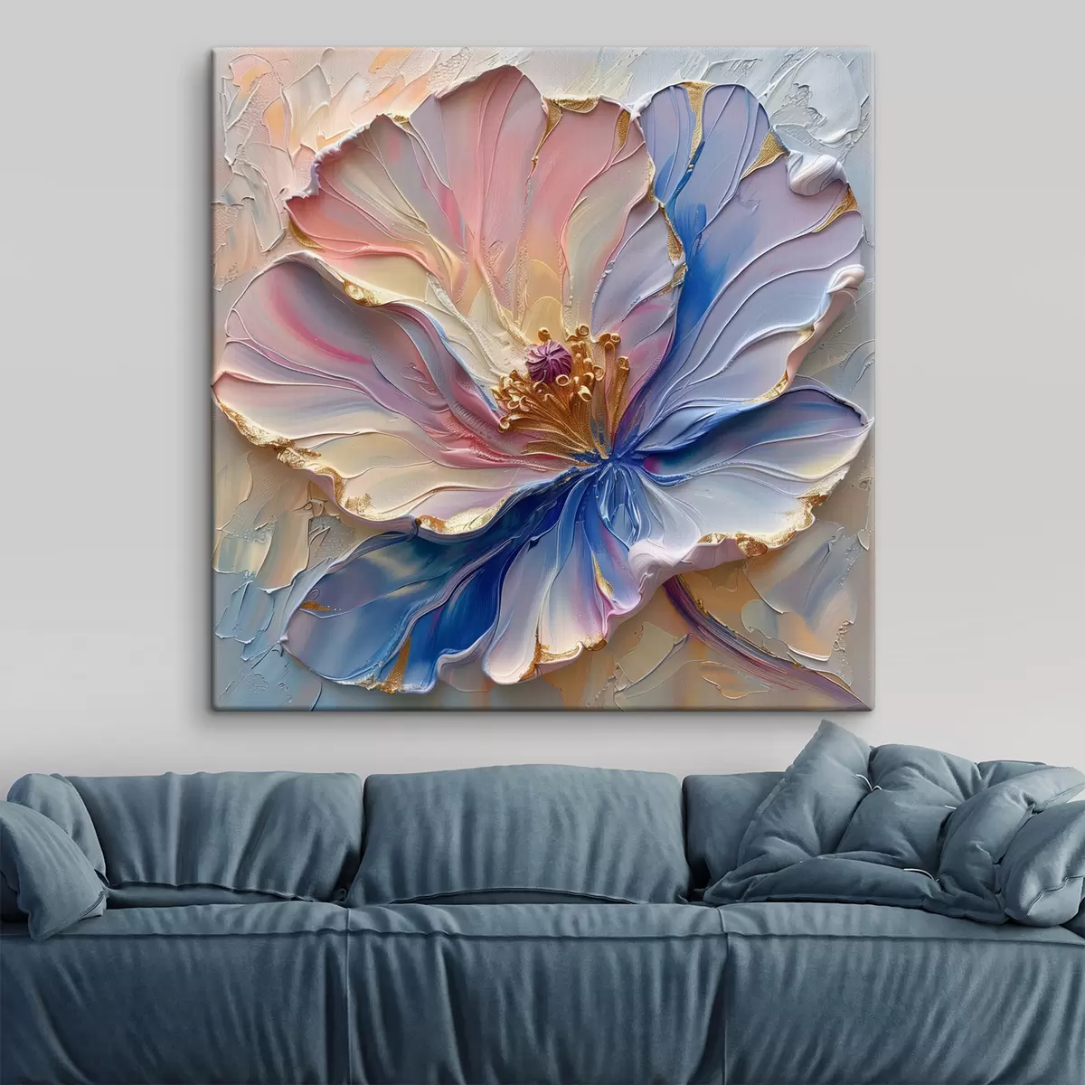 Schilderij Een grote bloem in zachtroze en blauwe tinten Art. s41006