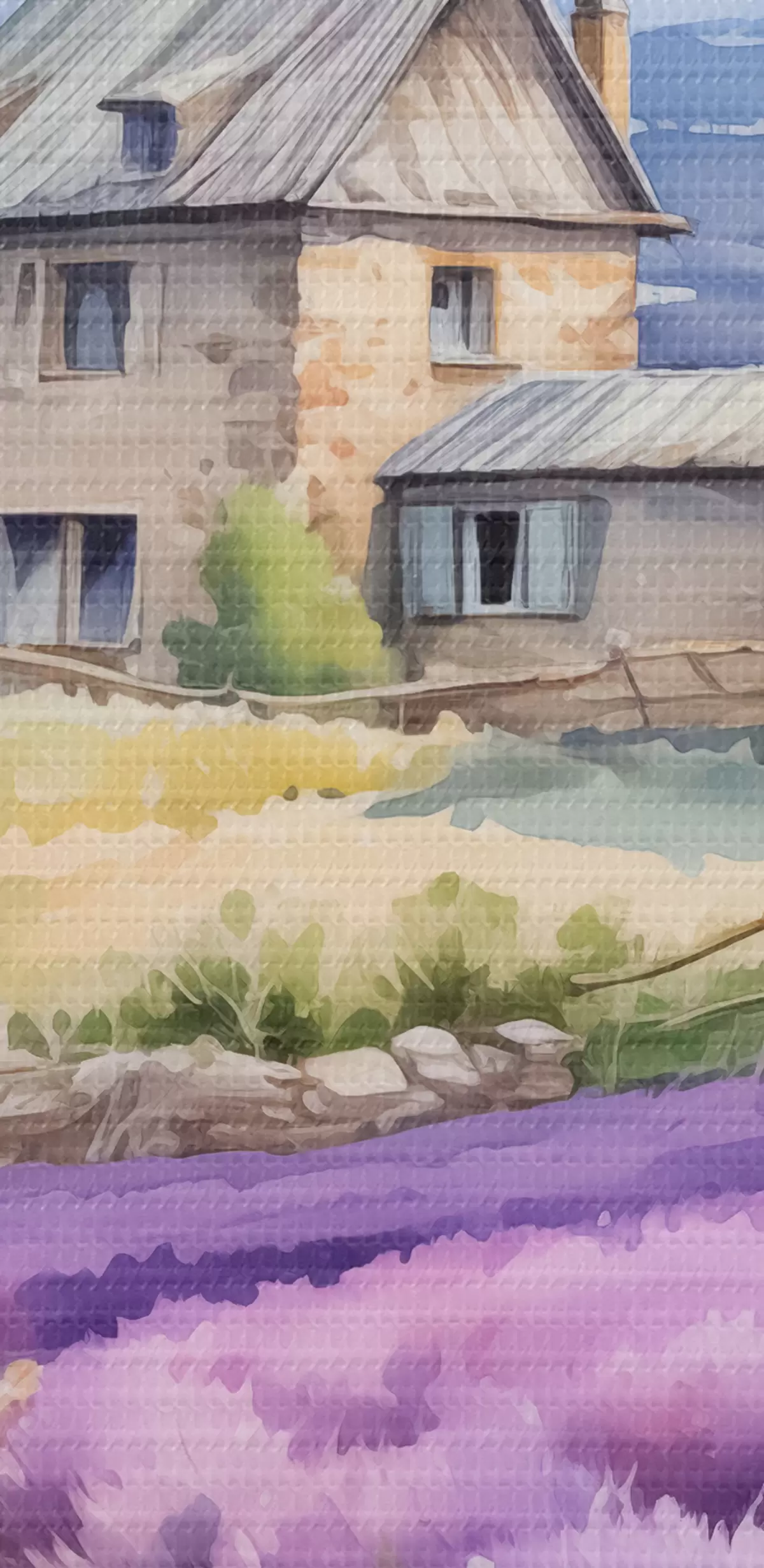 Schilderij Landhuis met bergen op de achtergrond bij lavendelveld Art. s41012