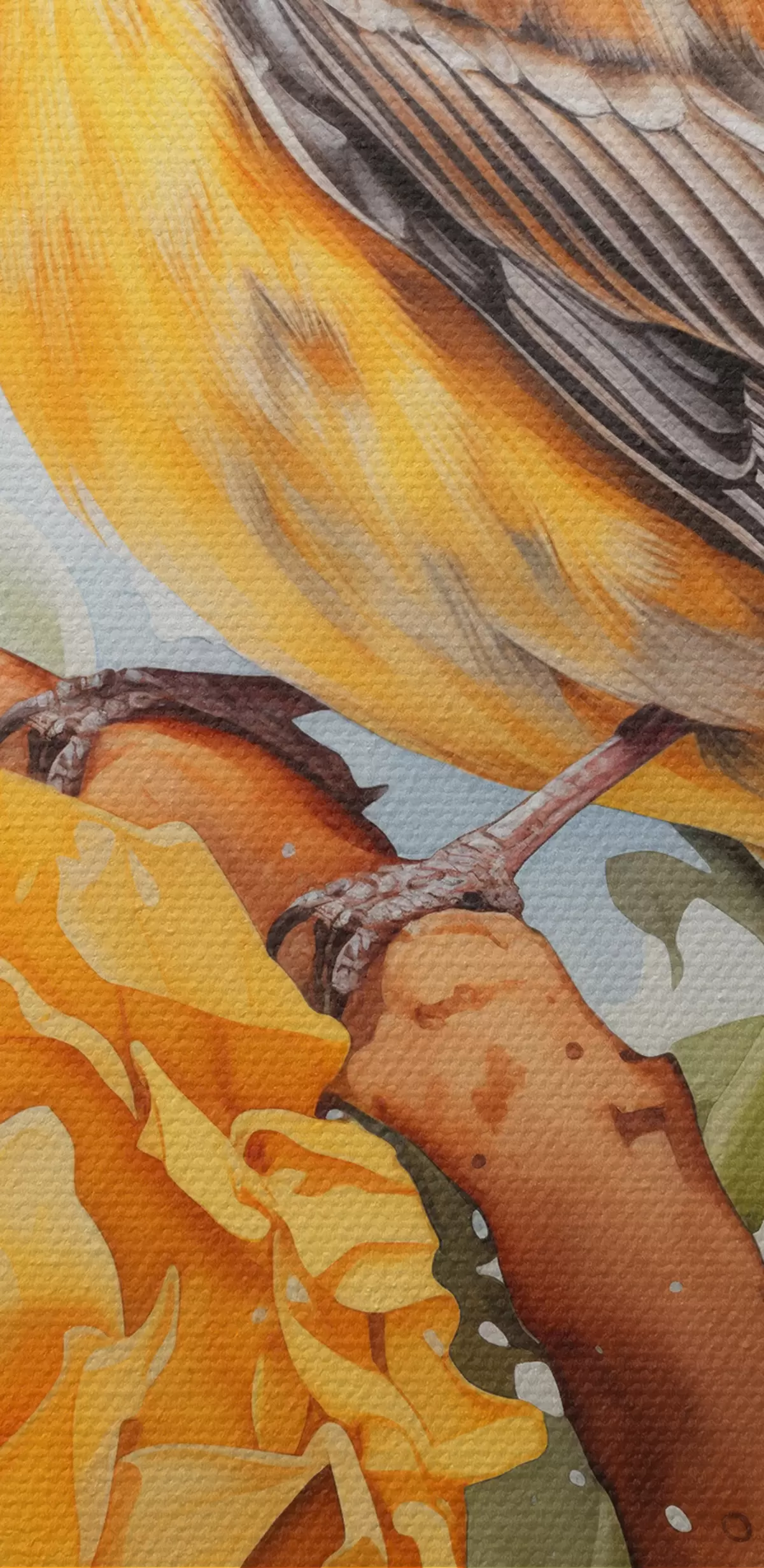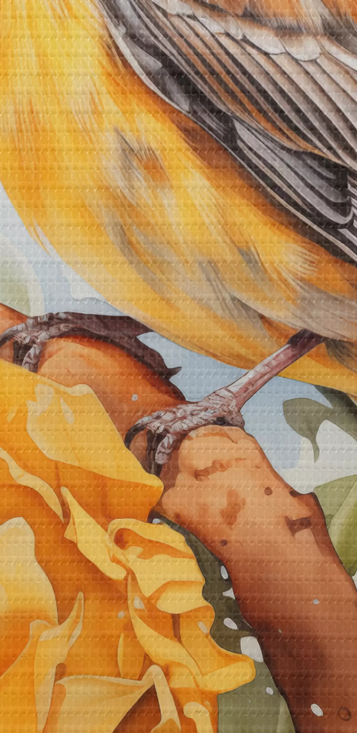 Schilderij Gele vogel zittend op zonnebloem aquarel Art. s41015