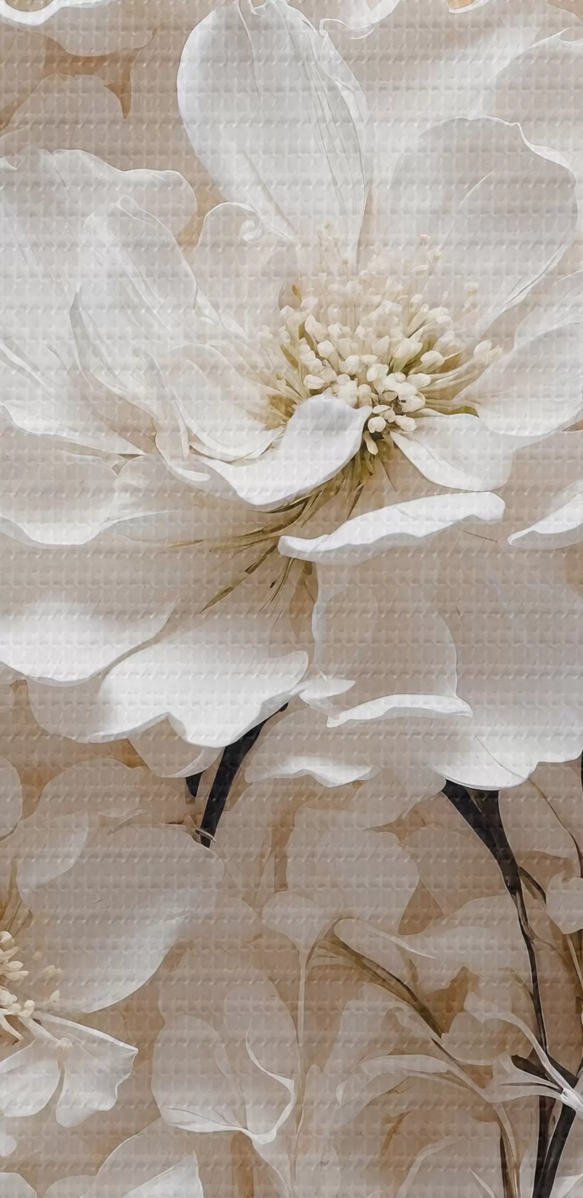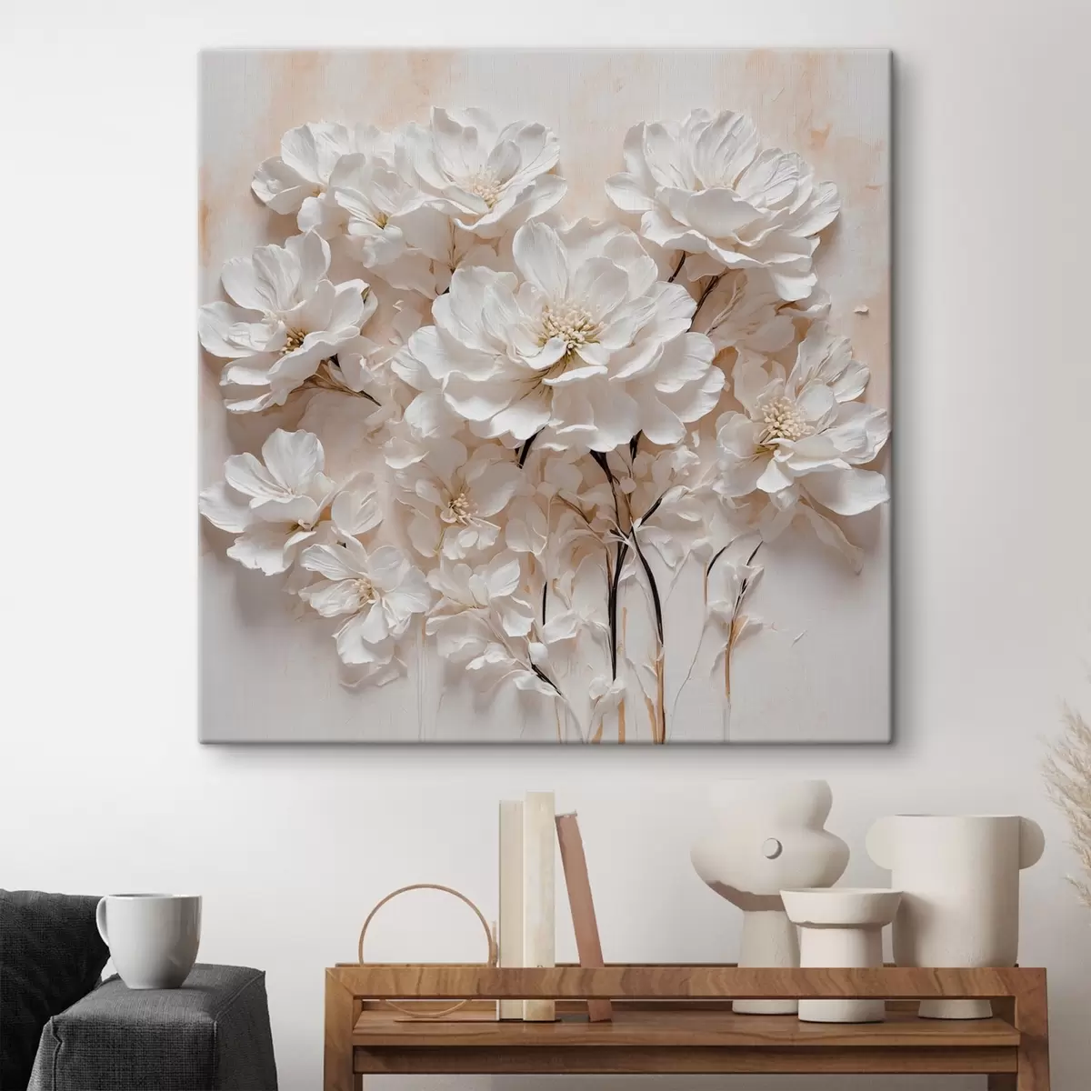 Schilderij Witte bloemen op wit-oranje achtergrond Art. s41042