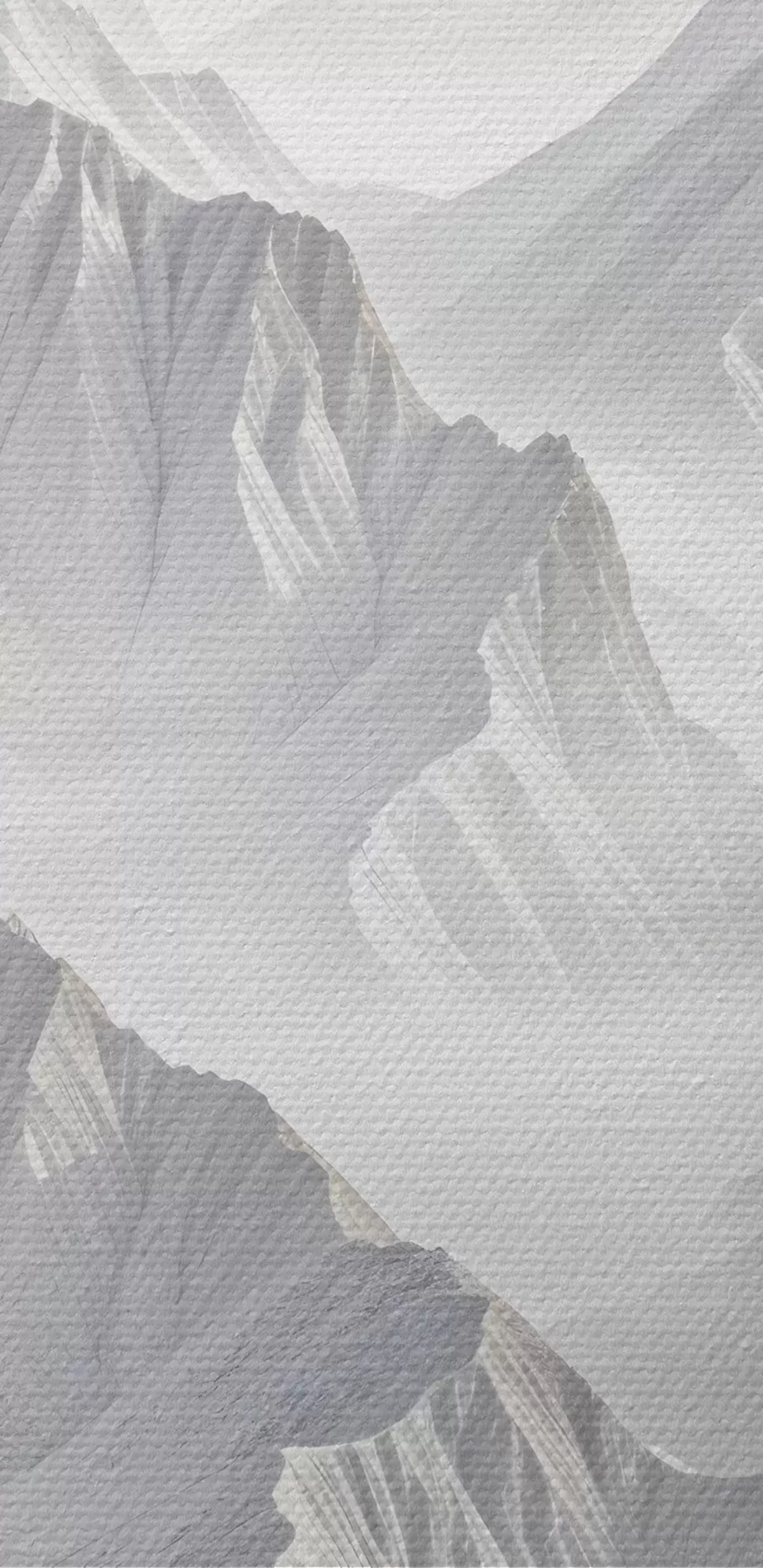 Schilderij Besneeuwde minimalistische bergtoppen in een mistig landschap Art. s41083
