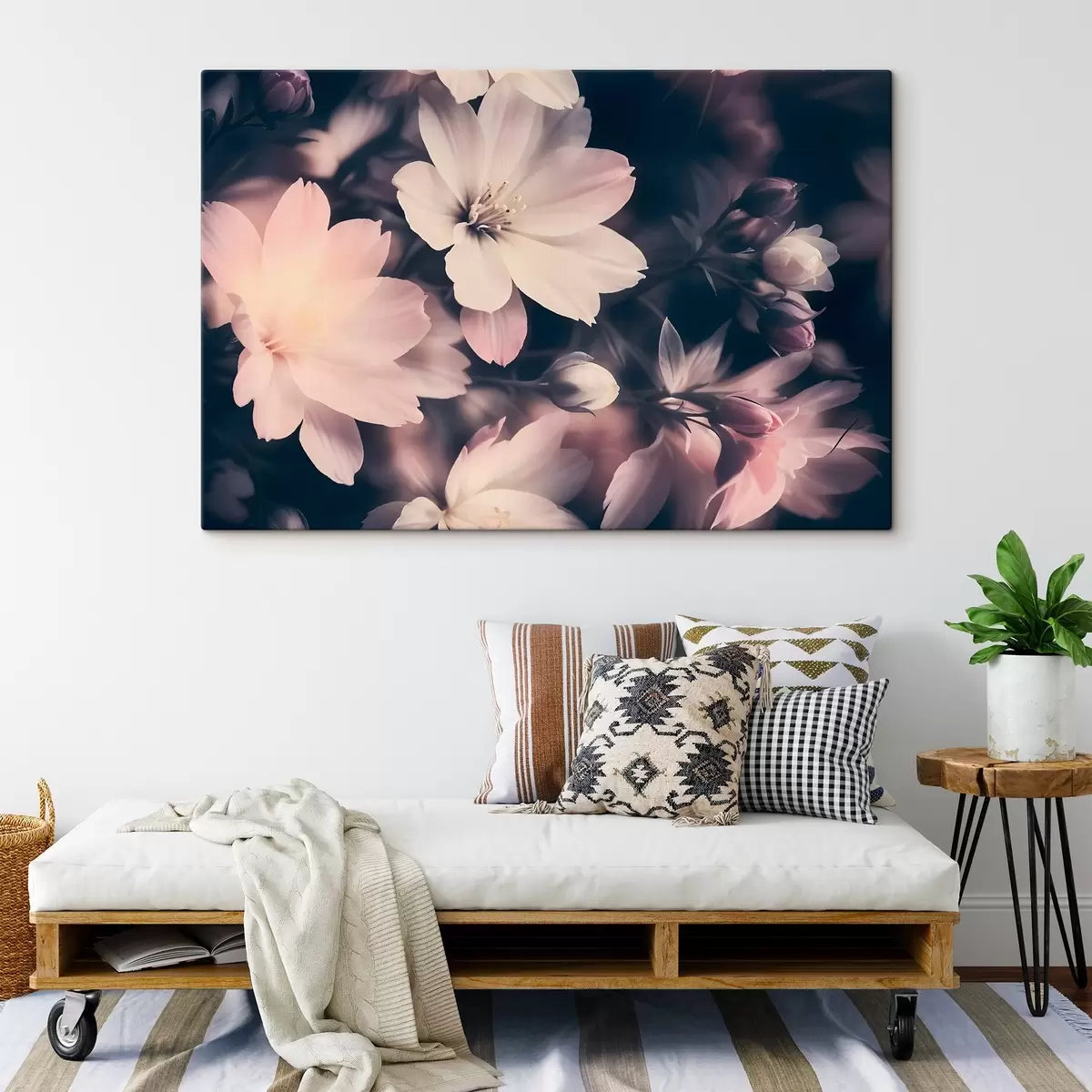 Schilderij Zachtroze en witte vintage lichte bloemen met onscherpe achtergrond Art. s41084