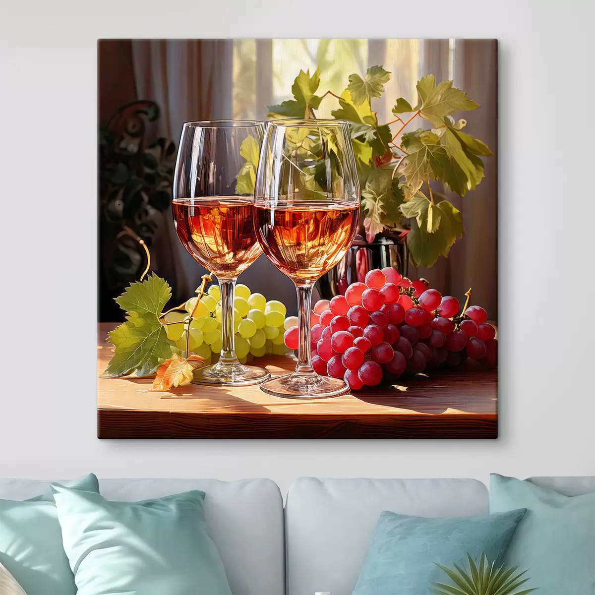 Schilderij glazen wijn en druiven, stilleven Art. s41105