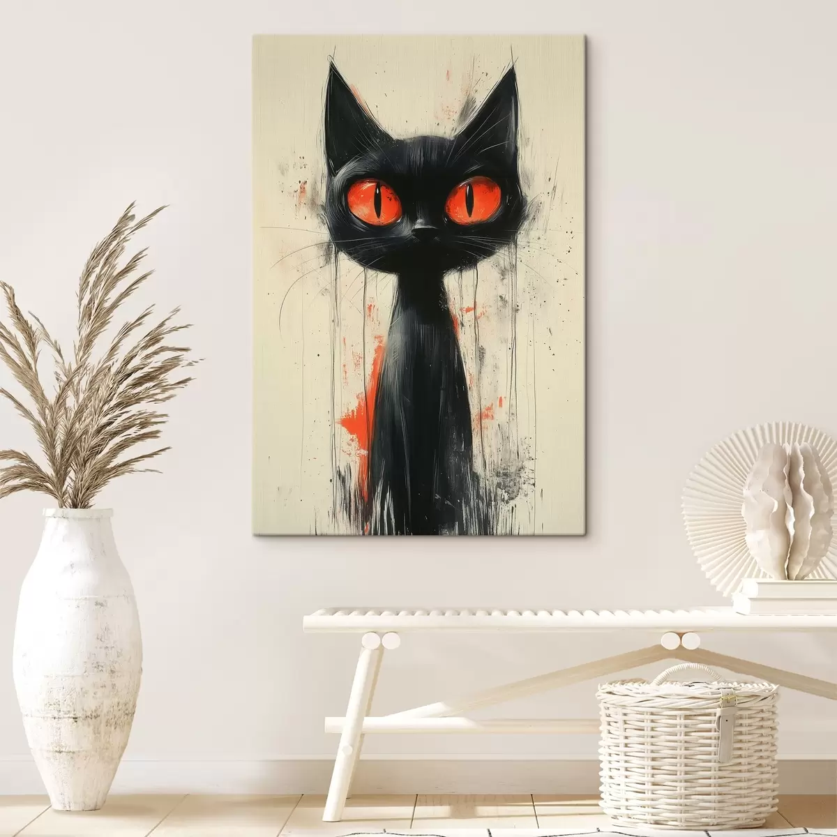 Schilderij Handgetekende zwarte kat op een achtergrond van aquarelvlekken Art. s41121