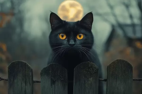 Schilderijen Zwarte kat en volle maan op de achtergrond s41123