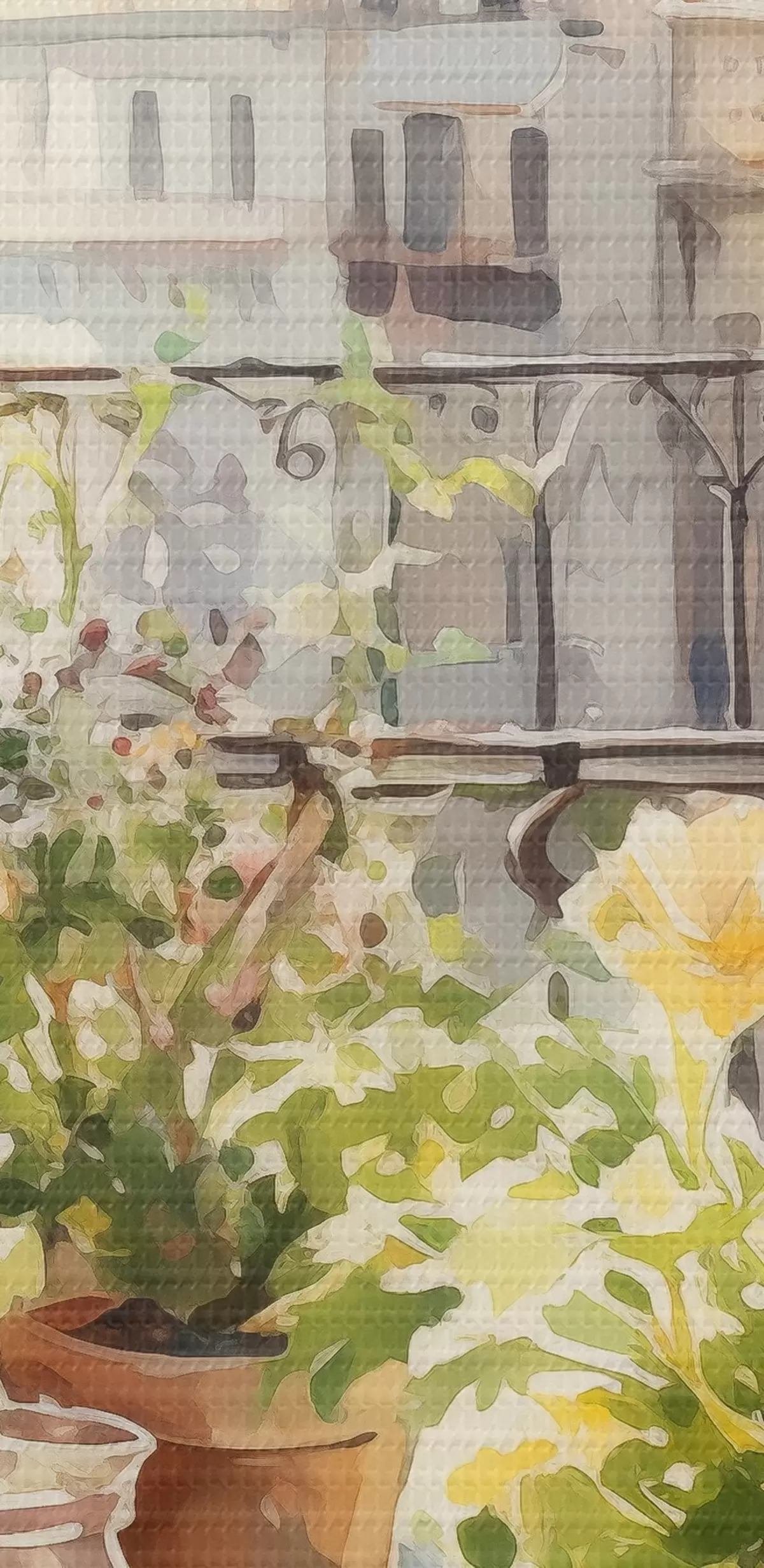 Schilderij Romantisch diner met uitzicht op de stad, aquarel, bloemen Art. s41168