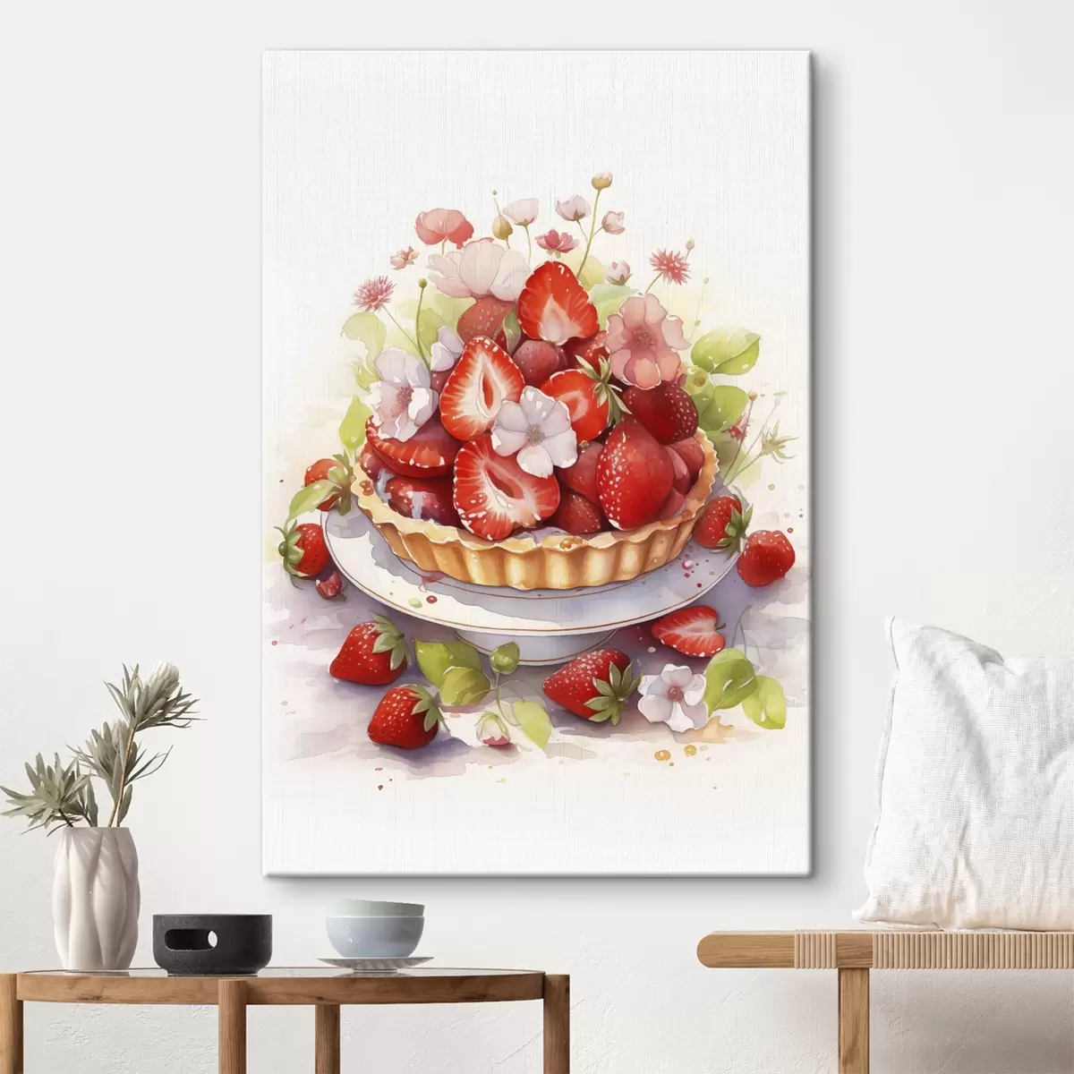 Schilderijen Aardbeientaart, aquarel, bloemen s41177